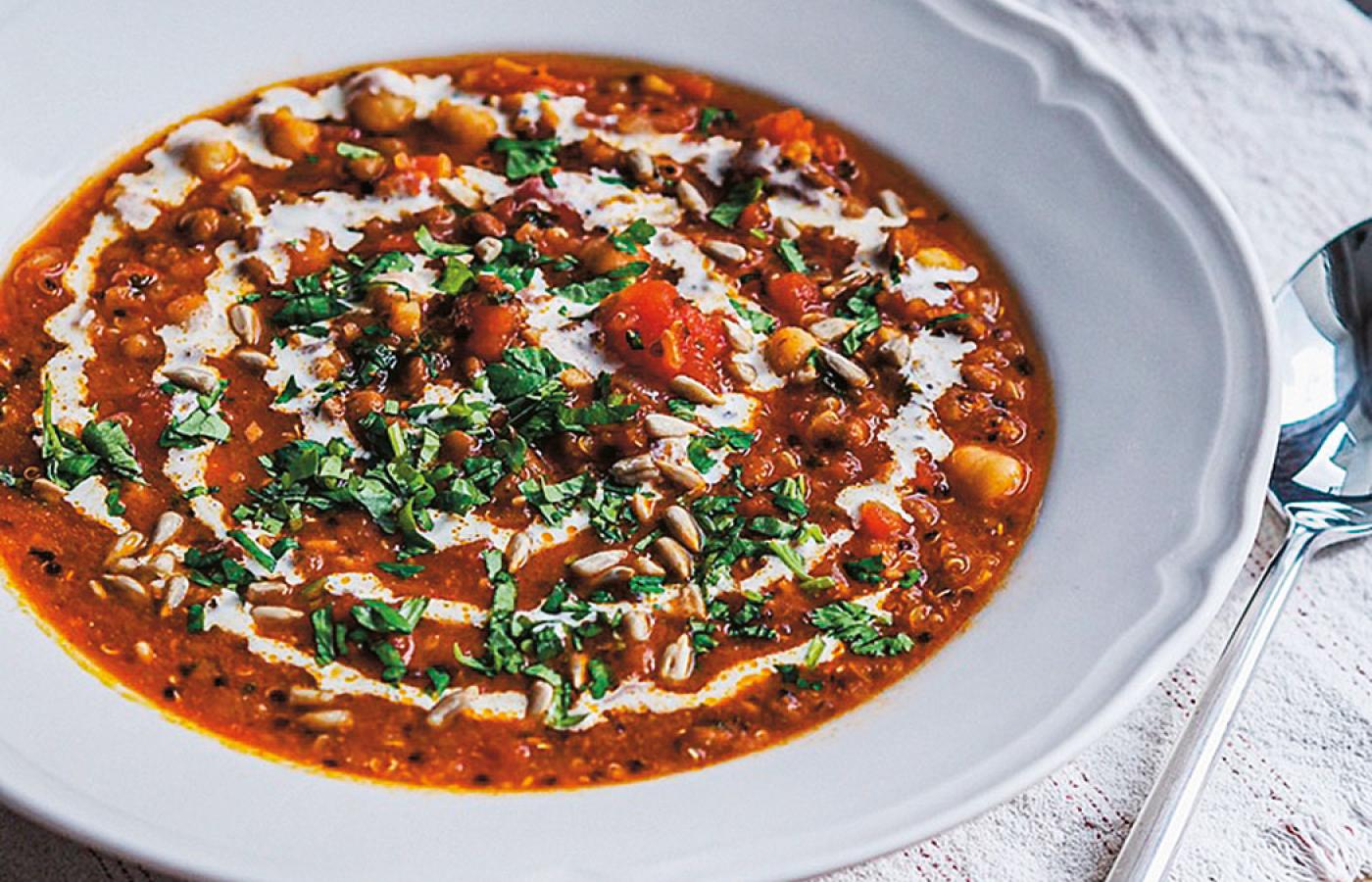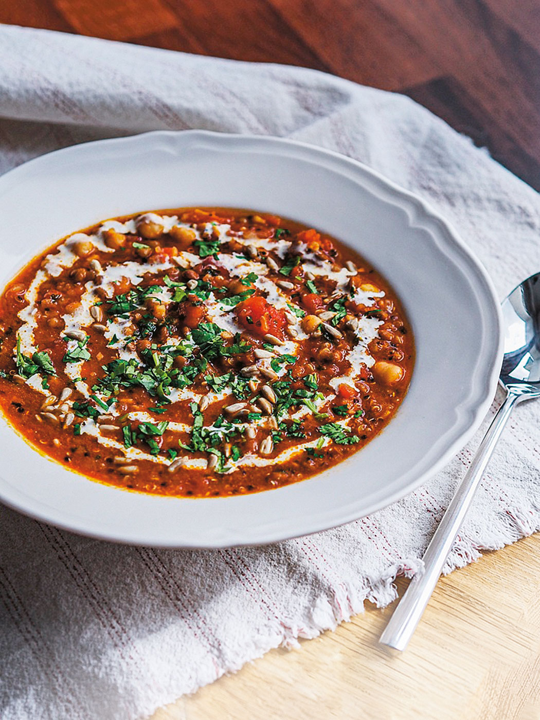 Zawsze mnie dziwi, że w naszej kuchni jest tak mało strączków – jemy trochę grochu, białej fasoli, niektóre regiony mają dania z soczewicy, ale to właściwie tyle. A tak wiele jest sposobów na ich przygotowanie! Moja jesienna zupa – oprócz strączków – wymaga tylko paru łatwo dostępnych składników, minimum uwagi i 40 minut. Taka zupa syci, krzepi (złamanego serca raczej nie polepi, ale próbować można) i pomaga bardziej cieszyć się jesienią/zimą.