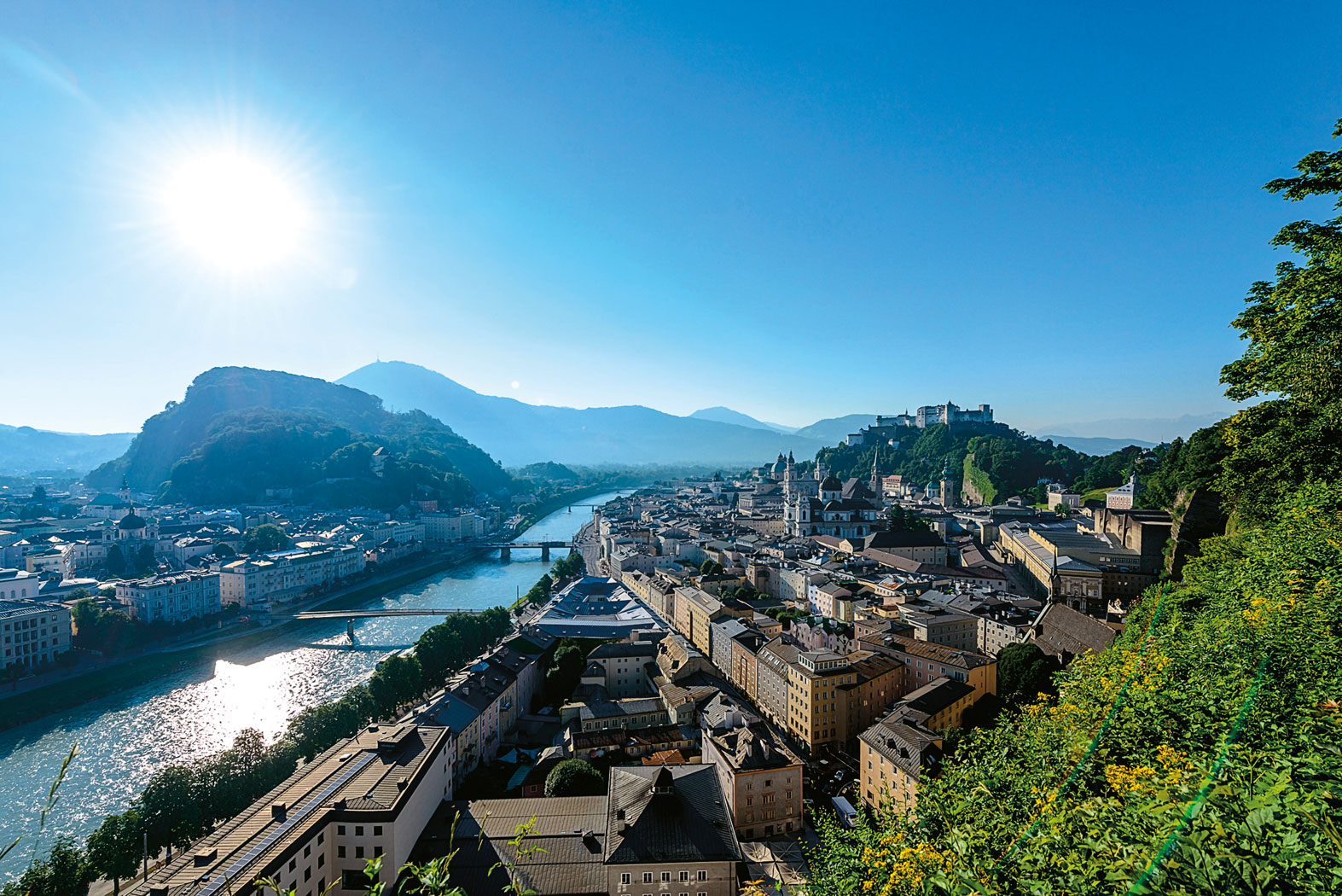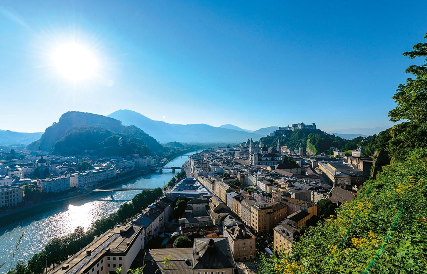 Kolejową trasę po Austrii możemy również odbyć w odwrotnym kierunku i rozpocząć ją od Salzburga, kierując się potem przez Innsbruck i Klagenfurt do Grazu. W takim przypadku wyjątkowo użyteczny będzie nocny pociąg Chopin z Warszawy, przez Katowice, do Monachium, który zatrzymuje się w Salzburgu. W ten sposób można dostać się z Polski do miasta Mozarta bez przesiadki, i do tego rozpocząć zwiedzanie rano, będąc wypoczętym po nocy spędzonej w kuszetce lub wagonie sypialnym. Pociąg ten przyjeżdża do Salzburga o godz. 8.30, a zatem o porze idealnej na pyszne śniadanie. Kto rozpoczyna austriackie kółeczko od Grazu, a kończy je w Salzburgu, ten może punktualnie o godz. 20.30 wsiąść do składu odjeżdżającego do Polski. Dzięki temu w pełni wykorzysta swój ostatni dzień niezapomnianego austriackiego urlopu.