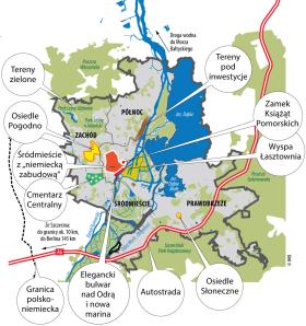 To „niemieckie miasto” urzeka. Dużymi placami z promieniście biegnącymi odeń ulicami. Szerokimi alejami, przy których przeciwne pasy ruchu często oddzielone są od siebie szerokim, zadrzewionym traktem spacerowym. I zwartą zabudową z przełomu wieków, w swym eklektyzmie może niezbyt oryginalną i dużo bliższą stolicy Niemiec aniżeli Francji, ale bogactwem dekoracji architektonicznych świadczącym o zamożności dawnych właścicieli. A także sąsiadującym ze Śródmieściem osiedlem Pogodno, które jednakowo uwodzi okazałymi starymi willami, bogatymi rezydencjami i pałacykami, a nawet skromnymi domami jednorodzinnymi.