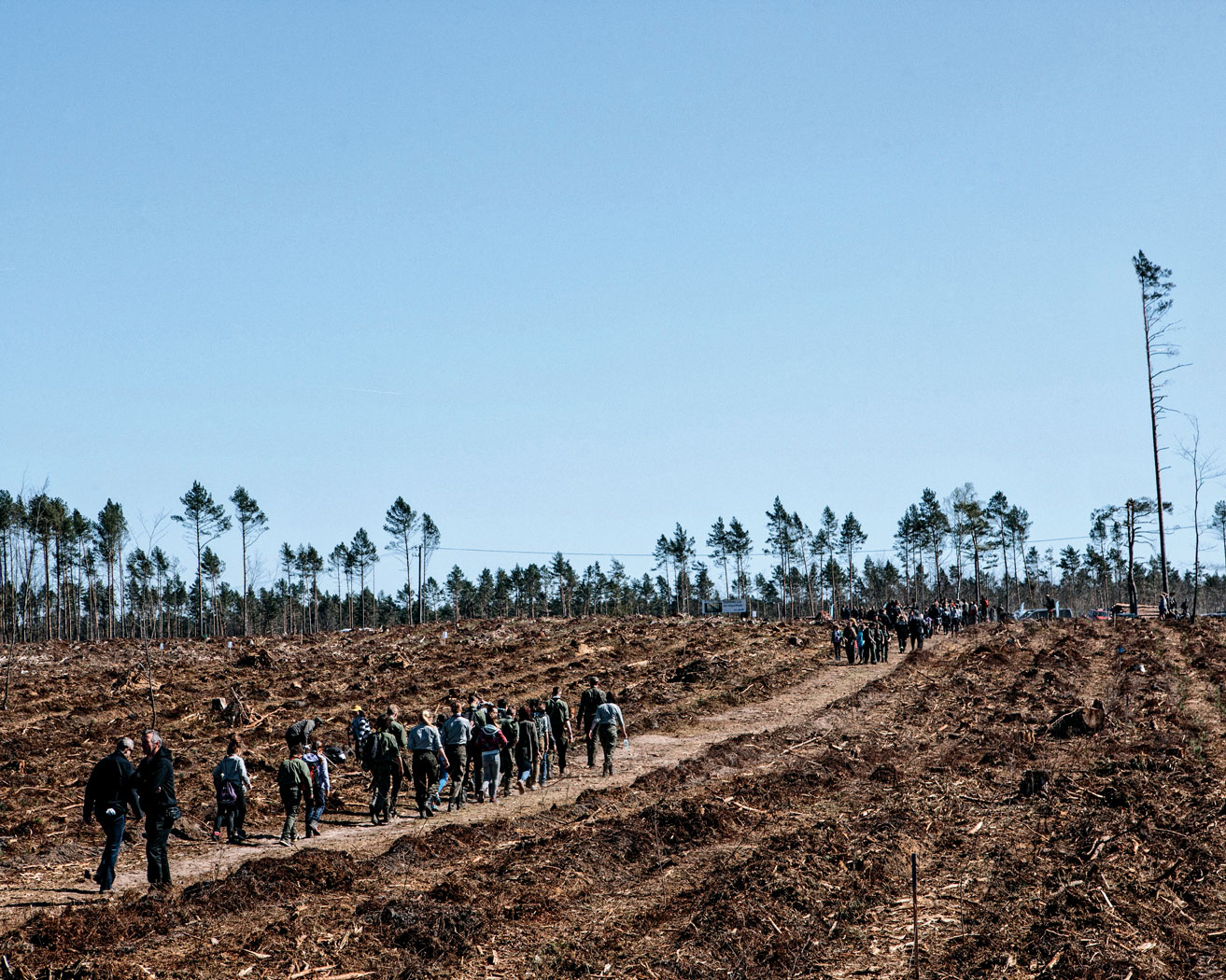 Jeszcze rok temu z ulicy Wczasowej w Rytlu nie było widać torów. Zasłaniał je las. Miękki kolejowy łoskot, przefiltrowany przez iglastą siatkę, kołysał do snu. Dziś tory widać i słychać – zmodernizowanym za unijne pieniądze traktem suną składy wypełnione posegregowaną grubizną. Dźwięk nie jest już jednak niczym stłumiony. Wyostrzył się. Ale i spowszedniał, tak jak wizg pił, stukot ramion kombajnów zrębowych. W kulminacyjnym momencie było ich tu ponad 170.