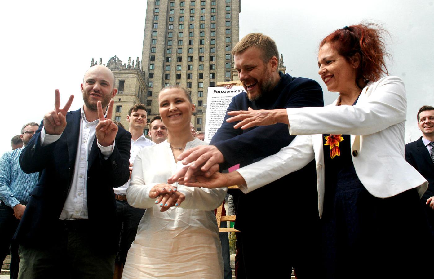 13:38. Jest koalicja, nie ma kandydata. Razem, Inicjatywa Polska, Wolne Miasto Warszawa i Zieloni ogłosili zawiązanie koalicji wyborczej w stolicy. „Będziemy trzecią siłą, która zawalczy o drugą turę” – mówił lider WMW Jan Śpiewak. Kto będzie kandydatem na prezydenta? „W szeregach tej silnej drużyny, którą udało się zbudować w Warszawie, jest niejedna postać formatu prezydenckiego” – mówi Adrian Zandberg.