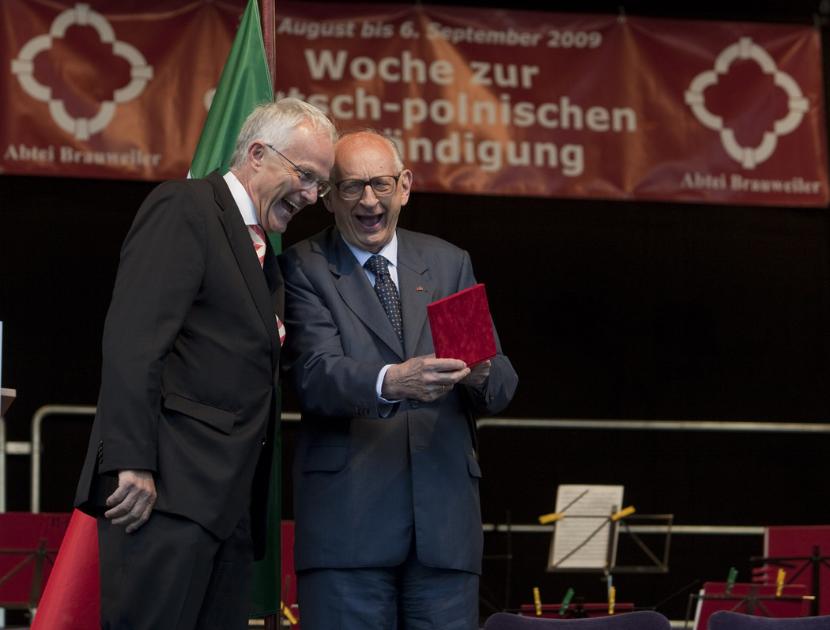Profesor uważał również, że tylko „jeśli wszystko nas dzieli, dialog nie ma sensu”. Z premierem Północnej Nadrenii-Westfalii, Jürgenem Rüttgersem profesor spotkał się podczas uroczystości wręczenia Władysławowi Bartoszewskiemu Nagrody Rychezy w opactwie Brauweiler koło Düsseldorfu w 2009 roku. Kontakty z Niemcami były dla niego ważne. Prof. Bartoszewski był bowiem wybitnym historykiem i świadkiem historii. Był więźniem Auschwitz, działaczem Polskiego Państwa Podziemnego, uczestnikiem Powstania Warszawskiego. W demokratycznej Polsce dwukrotnie zajmował stanowisko ministra spraw zagranicznych RP, był też senatorem.