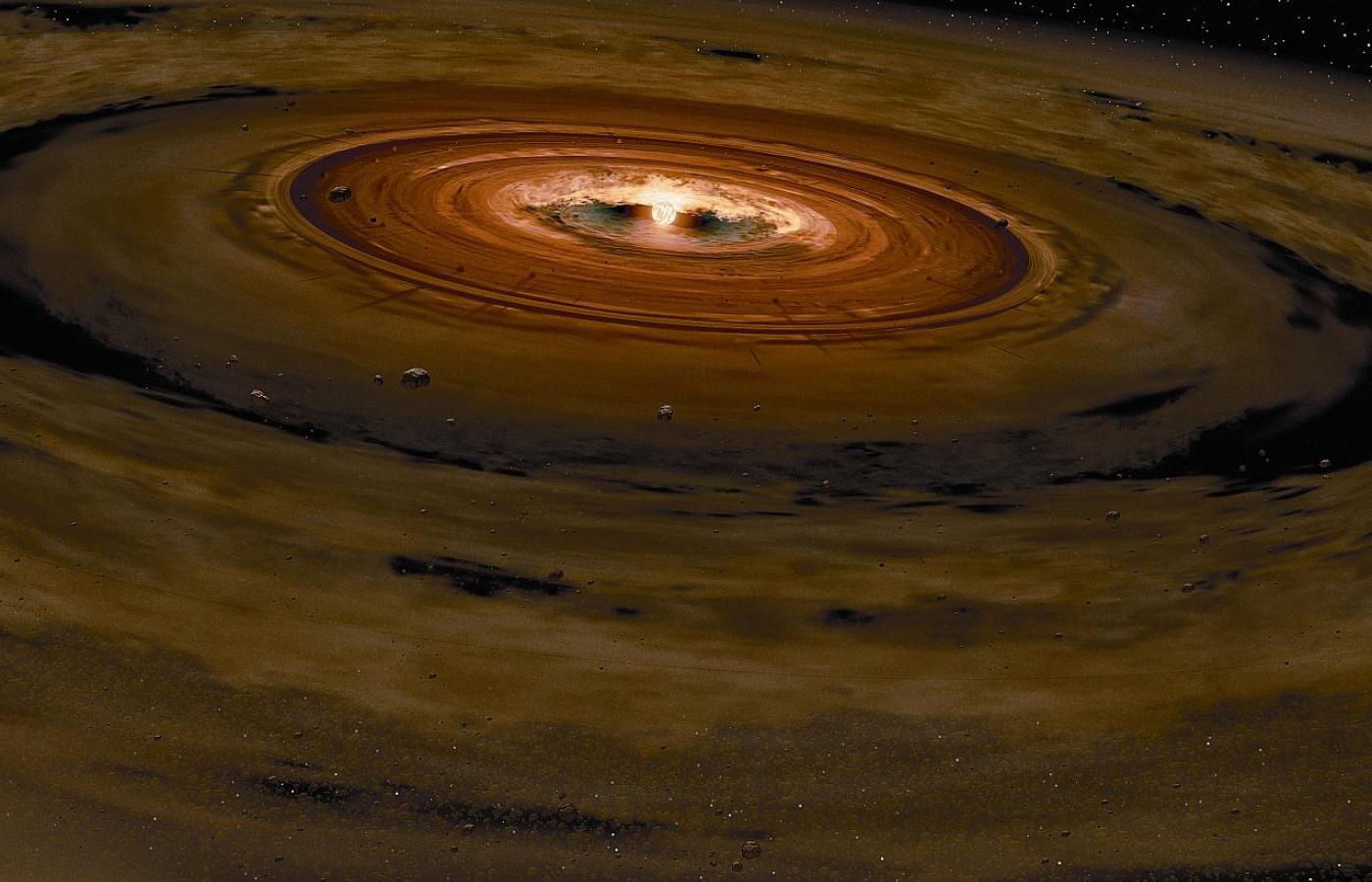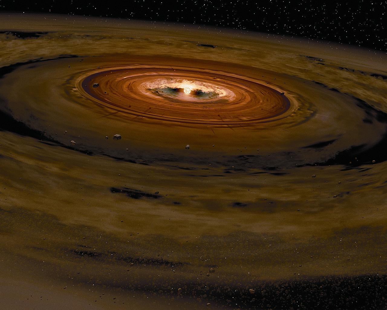 Nasz układ planetarny powstał 4,5 mld lat temu z obłoku, który zapadł się pod wpływem własnej grawitacji i przekształcił w młodą gwiazdę otoczoną cienkim dyskiem protoplanetarnym. Wewnętrzna część dysku miała zbyt wysoką temperaturę, by przetrwały w niej związki organiczne, za to jego peryferia były dla dużych cząsteczek przechowalnią wręcz idealną. Resztki dyskowej materii, pozostałe po uformowaniu się planet, obserwujemy jako komety i planetoidy. Jednak w swej pierwotnej postaci zachowała się ona tylko w kometach i rozsiewanych przez nie rojach meteorytowych.