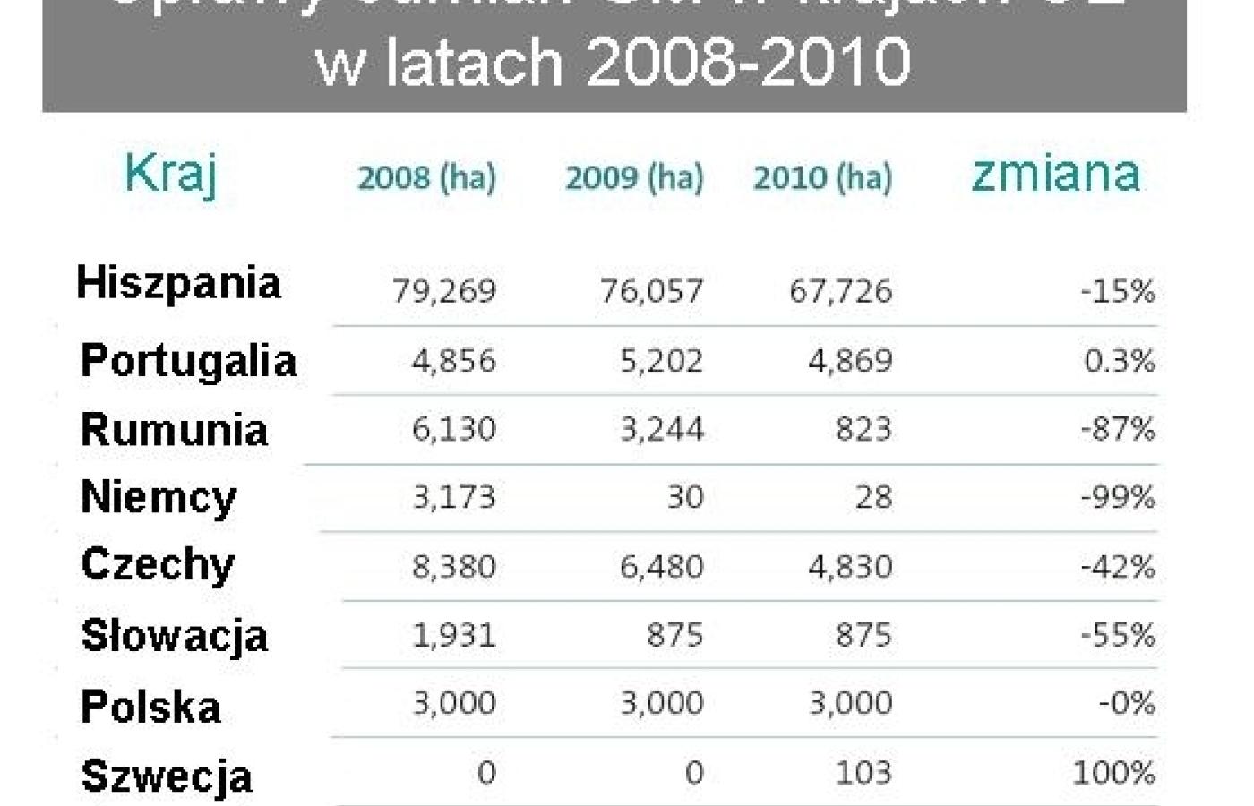 Red. Rotkiewicz przywołuje też raporty ISAAA dotyczące światowego areału upraw GMO. ISAAA to organizacja finansowana przez Monsanto i inne koncerny produkujące GMO, której celem jest propagowanie biotechnologii w rolnictwie. Nie jest to rzetelne źródło danych, ponieważ ISAAA raportuje tylko sukcesy przemysłu biotechnologicznego i nie podaje danych z Europy, gdzie tych sukcesów jest coraz mniej. Już osiem krajów UE: Francja, Niemcy, Luksemburg, Grecja, Austria, Węgry, Bułgaria i Włochy, wprowadziło zakazy upraw obydwu zalegalizowanych w Europie odmian GMO (kukurydza MON810 i ziemniak Amflora) lub tylko jednej z nich. Irlandia oraz Walia prawie w 100% objęte są strefą wolną od GMO, zaś Anglia w blisko 50%. W Szwajcarii obowiązuje moratorium na uprawy GMO wprowadzone w wyniku ogólnonarodowego referendum. Na przestrzeni lat 2008 – 2010 areał upraw GMO w Europie spadł o 23%. Oczywiście są to dane niewygodne dla lobby GMO, dlatego również na stronie internetowej czeskiego oddziału Monsanto do dzisiaj pokazywane są mapy Europy sprzed wprowadzenia zakazów Francję i Niemcy, na których areał GMO przedstawia się całkiem inaczej niż w rzeczywistości. O ile nieuczciwe działania marketingowe koncernu nie są godne pochwały, ale niespecjalnie dziwią jako częsta praktyka w biznesie, o tyle podawanie opinii publicznej jedynie jednostronnej i niepełnej informacji nie znajduje żadnego uzasadnienia.