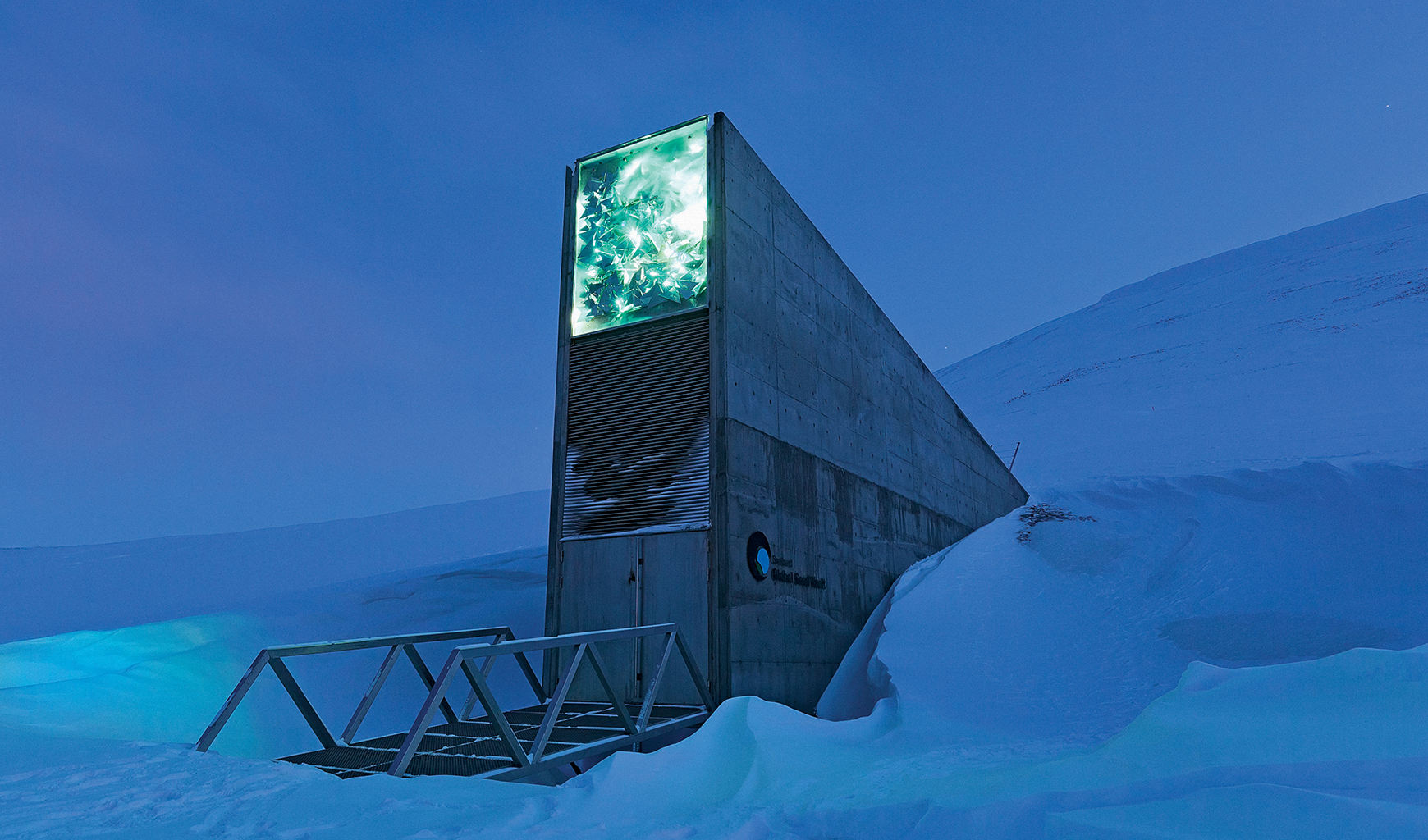 Nie ma tu żadnego portiera ani biura. Nasiona leżą w spokoju, co jakiś czas tylko doglądane przez tych, którzy dostarczają nowe, opieczętowane skrzynie. Ten wystający z ziemi kawałek betonu to zaledwie wejście. W środku jest cicho i zaskakująco ciepło, mimo że -18. Na betonowym podłożu widać języki lodu ze ściekającej po ścianach wody, a je same przy wejściu pokrywa osad wyglądający jak wieczna szadź. Tutaj też zaczyna się ponad 100-metrowy tunel, prowadzący do wielkiej hali wykutej w skale, od której odchodzą trzy inne, za kolejnymi metalowymi drzwiami. Wydrążono je wystarczająco wysoko, żeby ustrzec się przed zmianami poziomu morza, i dość głęboko, żeby zagwarantować stabilną temperaturę. Każda z hal ma 10 m szerokości oraz 6 wysokości i może pomieścić 1,5 mln próbek. Dziś wykorzystywana jest tylko środkowa hala. W prawej jest magazyn czarnych pudeł, do których chowa się próbki, a lewa pozostaje pusta. Cały bank może przechować w sumie 4,5 mln próbek, przy czym każda zawiera około 500 sztuk, co daje grubo ponad 2 mld nasion roślin jadalnych z najdzikszych zakątków świata, ukrytych wewnątrz arktycznej góry.