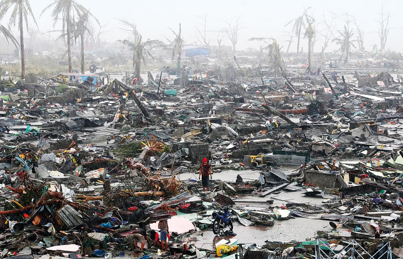 Tajfun narodził się na zachodnim Pacyfiku, gdzieś w okolicach Melanezji i z potworną siłą uderzył w Filipiny w ostatni piątek. Zaklasyfikowany do piątej, najwyższej kategorii cyklonów tropikalnych, wywołał podmuchy wiatru osiągające prędkość ok. 320 km/h. To oznacza, że wiatr w miejscach, w które uderzył Hayian mógł wiać z prędkością prawie 100 m/sek. Przetoczył się przez środkowe Filipiny i dokonał zniszczeń szacowanych wstępnie na 70-80 procentowe. Zginęło ok. 10 tys. Filipińczyków, poza tym kilka tys. uznaje się zaginionych. Na wybrzeżach – szczególnie ucierpiało nadmorskie miasto Tacloban – wywołał powodzie sztormowe, to znaczy wepchnął na ląd ogromne masy morskiej wody. Wszystko zostało zalane, ludzie są pozbawieni prądu, domów, jedzenia – po prostu prawdziwe inferno.