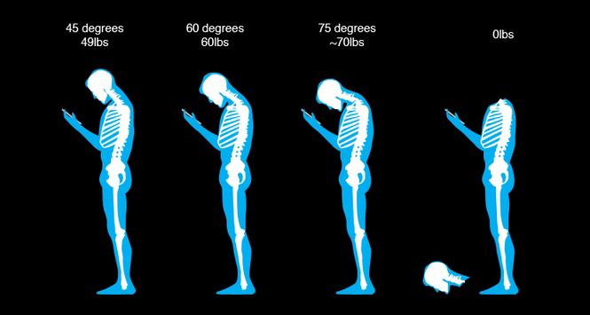 Przytaczaliśmy niedawno artykuł dr. Kennetha Hansraja, który dowodzi, że spoglądanie w telefon (zwłaszcza przeglądanie internetu, odbieranie i wysyłanie esemesów) może obciążać kręgosłup nawet dodatkowymi 27 kilogramami. Obciążenie miałoby wzrastać lub maleć w zależności od kąta pochylenia głowy. „To już epidemia – uznał badacz. – A jeśli nie epidemia, to przynajmniej zjawisko bardzo powszechne”.