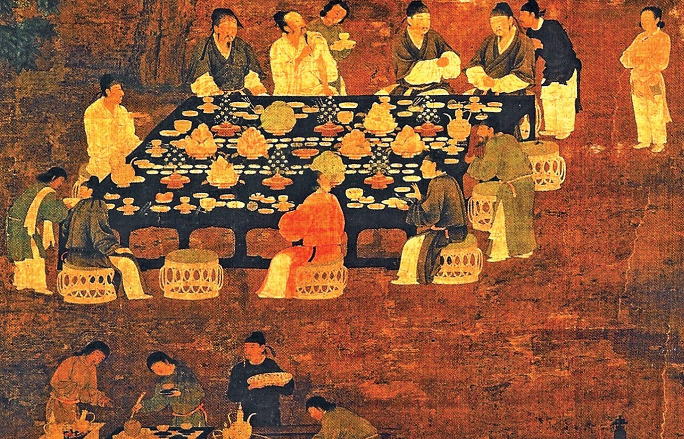 Oprawą cesarskich przyjęć zajmował się urząd do spraw bankietów i biuro do spraw wyszukanych potraw. Przerost biurokracji sprawił, że w XVIII w. podczas skromnego posiłku cesarskiego wnoszono 28 tac z deserami, a za dynastii Qing (1644–1912) na bankiecie cesarzowi i cesarzowej wdowie przysługiwało po 108 dań, cesarzowej 96 dań, a konkubinom pierwszej rangi – 64. Do dziś chińskie przyjęcia świąteczne są niezwykle obfite, a niedojedzone resztki rozlicznych potraw powinny zostać na stole do końca uczty, bo to symbolizuje bogactwo. Jednak jeśli chodzi o zachowanie przy stole, Chińczycy bez problemu znaleźliby porozumienie z naszymi przodkami – bekanie, siorbanie, spluwanie, wyrzucanie resztek pod stół było mile widziane.