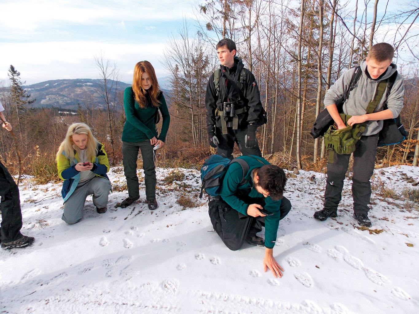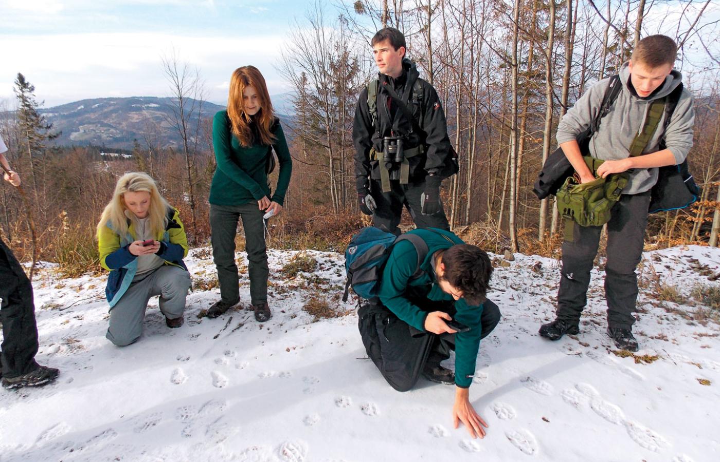 Chętnych, żeby tak chodzić i w poszukiwaniu wilczych śladów wpatrywać się w ziemię, nie brakuje. Często przyjeżdżają z zagranicy. Tym razem z Nottingham Trent University w Wielkiej Brytanii. Studenci ochrony dzikiej przyrody uczą się, jak badać i chronić występujące w Polsce drapieżniki: niedźwiedzia, rysia, a przede wszystkim wilka. Lepiej trafić nie mogli – Sabina jest jednym z największych autorytetów, jeśli o te zwierzęta chodzi. To ona wraz ze Stowarzyszeniem dla Natury Wilk, którego jest prezeską, od lat organizuje seminaria poświęcone dużym drapieżnikom.