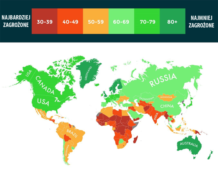 Wnioski z raportu – połączone ze słynnym indeksem Notre Dame Global Adaptation (ND-Gain) – działacze organizacji Eco Experts przedstawili w formie uproszczonej. Czyli na mapach. Jak z wyzwaniami klimatycznymi poradzą sobie różne kraje świata? Które zdołają się zaadoptować? Bo też trzeba zaznaczyć, że mapy nie biorą pod uwagę uwarunkowań geograficznych, ale przede wszystkim zdolności przystosowawcze – dużą rolę odegrają zatem poszczególne gospodarki.