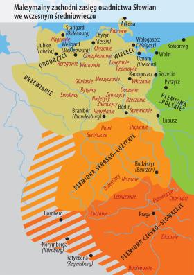 W Europie Środkowej Słowianom udało się ustabilizować osadnictwo przez założenie państw, jednak na rubieżach zachodnich nie pomogła nawet budowa umocnionych grodów, a bezpośredni kontakt z kulturą Zachodu sprawił, że Słowianie często ulegali narzuconej lub dobrowolnej asymilacji. Nie wszyscy jednak poddawali się germanizacji – Słowianie karynccy w Austrii zachowali tradycje i język przodków do XIX w., a Serbołużyczanie w Saksonii do dziś. – Najbardziej wytrwali byli Drzewianie połabscy z Wendlandu (okolice Lüneburga), którzy mimo że przez setki lat otaczał ich jedynie niemieckojęzyczny żywioł, aż do XVIII w. używali swojego zachodniosłowiańskiego dialektu – mówi prof. Sikorski.