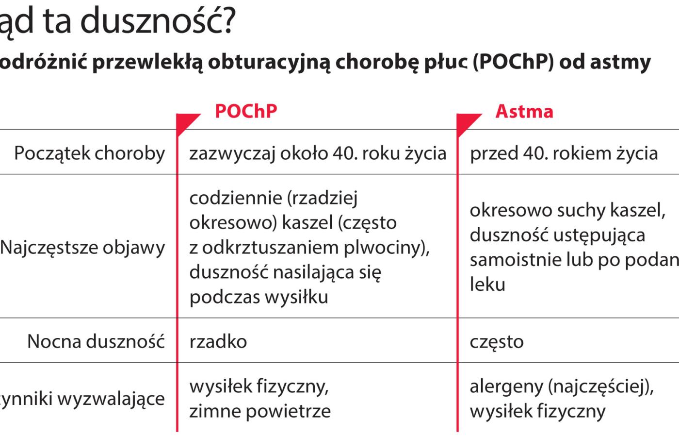 Cztery miliony Polaków cierpią na astmę. Dwa miliony – na przewlekłą obturacyjną chorobę płuc, spowodowaną zwężeniem (czyli obturacją) oskrzeli. Ale ponad połowa chorych na astmę i aż 80 proc. z POChP nie ma ustalonego rozpoznania. Nie wystawia to dobrej oceny lekarzom, ale też źle świadczy o naszej świadomości i wiedzy na temat objawów chorób układu oddechowego.