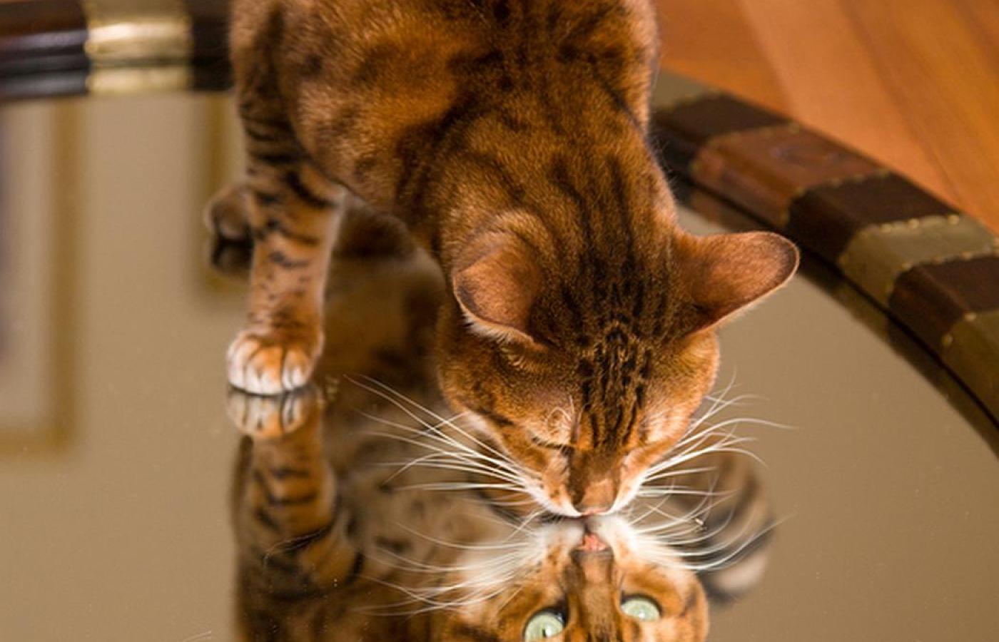 Wielu posiadaczy psów i kotów widziało zapewne swoich pupili specyficznie reagujących na własne odbicie w lustrze. Zachowujących się mianowicie tak, jakby było w nim widać innego osobnika (w serwisie YouTube można obejrzeć sporo zabawnych filmików, na których zarejestrowano takie sceny). Nasze domowe zwierzęta najwyraźniej więc nie rozpoznają własnego odbicia.