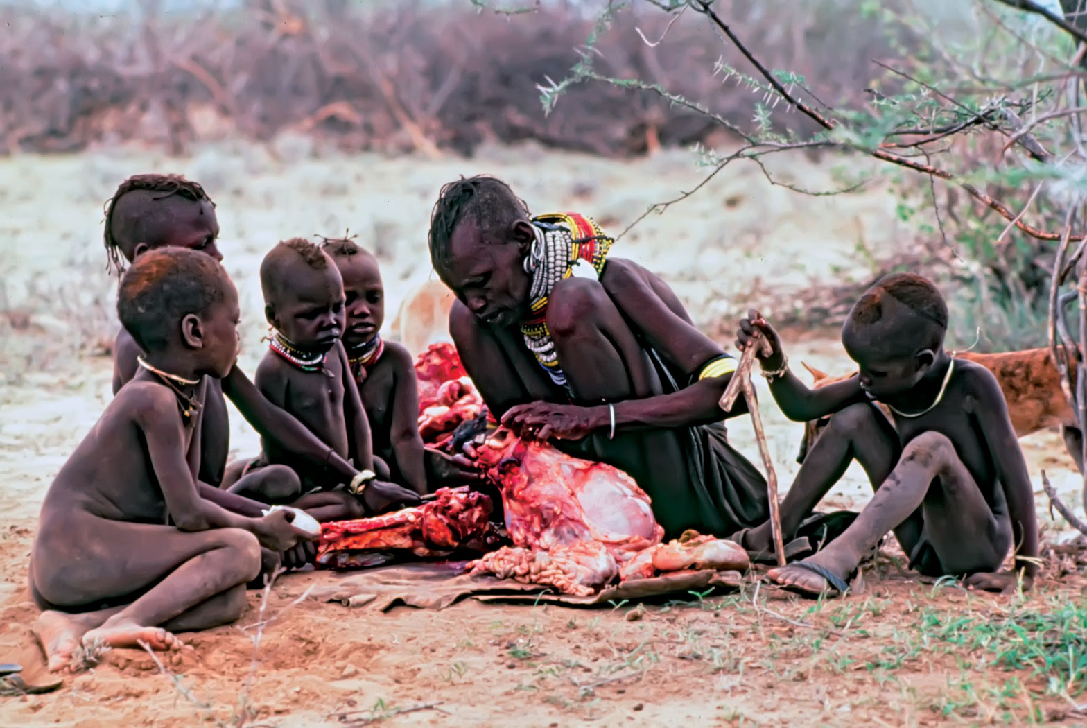 Lele nie są jedynym plemieniem, które ma specjalne słowo na głód mięsa, aby odróżnić go od zwykłego głodu. Mają je również ich sąsiedzi z centralnej Afryki – plemię łowców-zbieraczy Baka mówi o pn, plemię Luba o bwilu, a Bemba z Zambii o ubukashya. Po drugiej stronie oceanu Yuqui z Boliwii skarżą się na eyebasi, zaś wśród nikaraguańskich Miskito kobiety często odmawiają gotowania, jeśli nie mają mięsa, które by można wrzucić do garnka. Plemiona Papui-Nowej Gwinei twierdzą wręcz, że zwykły głód wywodzi się z żołądka, a głód mięsa – z gardła. Najbardziej poetycko chyba jednak opisał zjawisko głodu mięsa XIX-wieczny francuski podróżnik Paul Belloni Du Chaillu. Podczas wyprawy przez centralną Afrykę jeden z towarzyszących mu tubylców zaczął się uskarżać na tajemniczą chorobę, gouambę. Dzień po dniu ten młody Afrykańczyk płakał jak dziecko i narzekał, iż z głodu ściska mu się żołądek – jednocześnie jednak odmawiał zjedzenia warzyw, które przynosił mu Du Chaillu. Jedyne, co mogłoby go wybawić, twierdził Afrykańczyk, to mięso. Wkrótce Du Chaillu zrozumiał, że gouamba oznacza głód mięsa lub – jak opisał to później – „niezmierną tęsknotę wyczerpanego stworzenia za mięsem”.