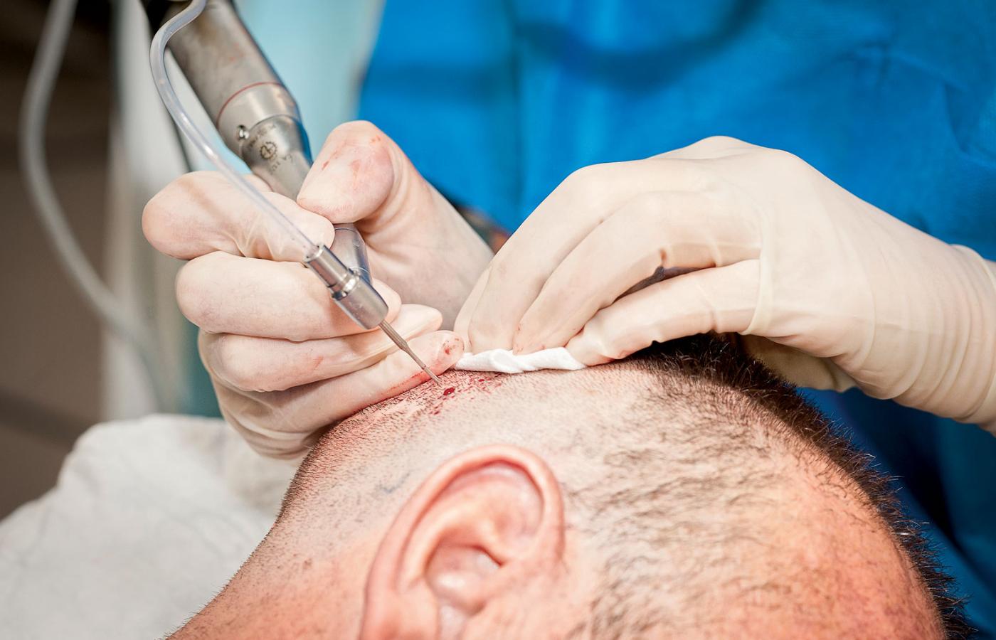 Zabieg i tak trwa z reguły cały dzień. Wcześniej odbywa się planowanie – lekarz wspólnie z pacjentem, na podstawie zdjęć z dawnych lat, pewnych wyobrażeń, a nieraz wizualizacji komputerowej, ustalają nową granicę owłosienia. Kandydat do przeszczepu widzi wówczas, jaką różnicę daje przeszczepienie np. 2,5 tys. mieszków (tzw. grafów) i 1 tys. Przed zabiegiem głowę na potylicy, skąd będą pobierane, trzeba ogolić. Wszystko przebiega w miejscowym znieczuleniu, przy pobieraniu mieszków trzeba na 3–5 godzin przyjąć pozycję, jakby się siedziało na motorze, później lekarz umieszcza pęsetą pod wybranym kątem każdy mieszek w zagłębieniu, z którego wyrośnie włos.