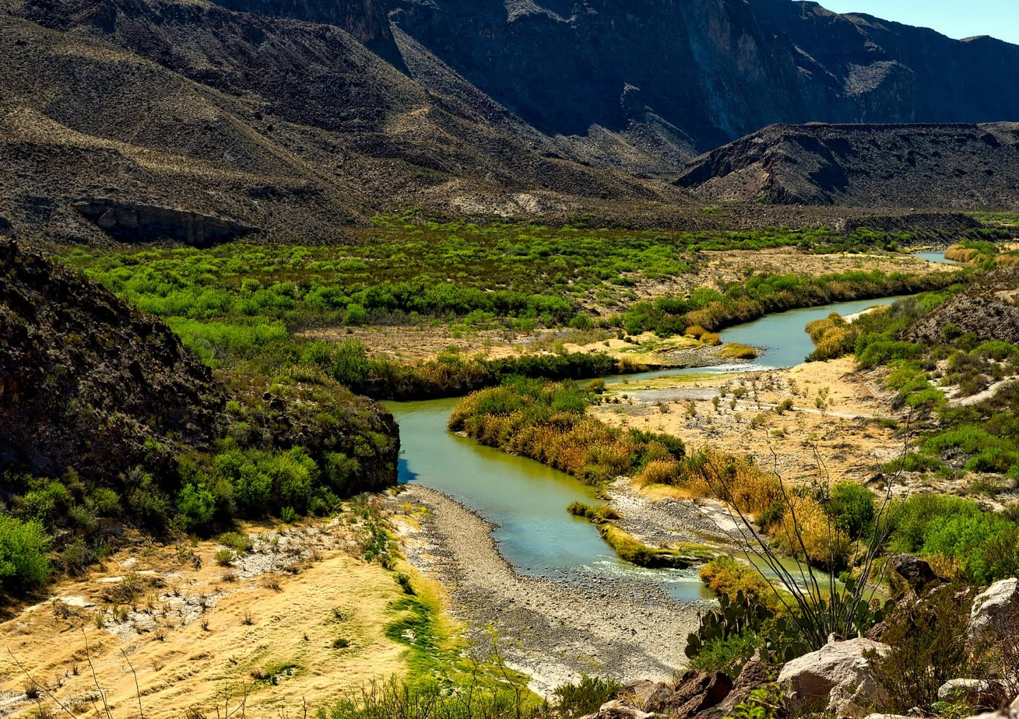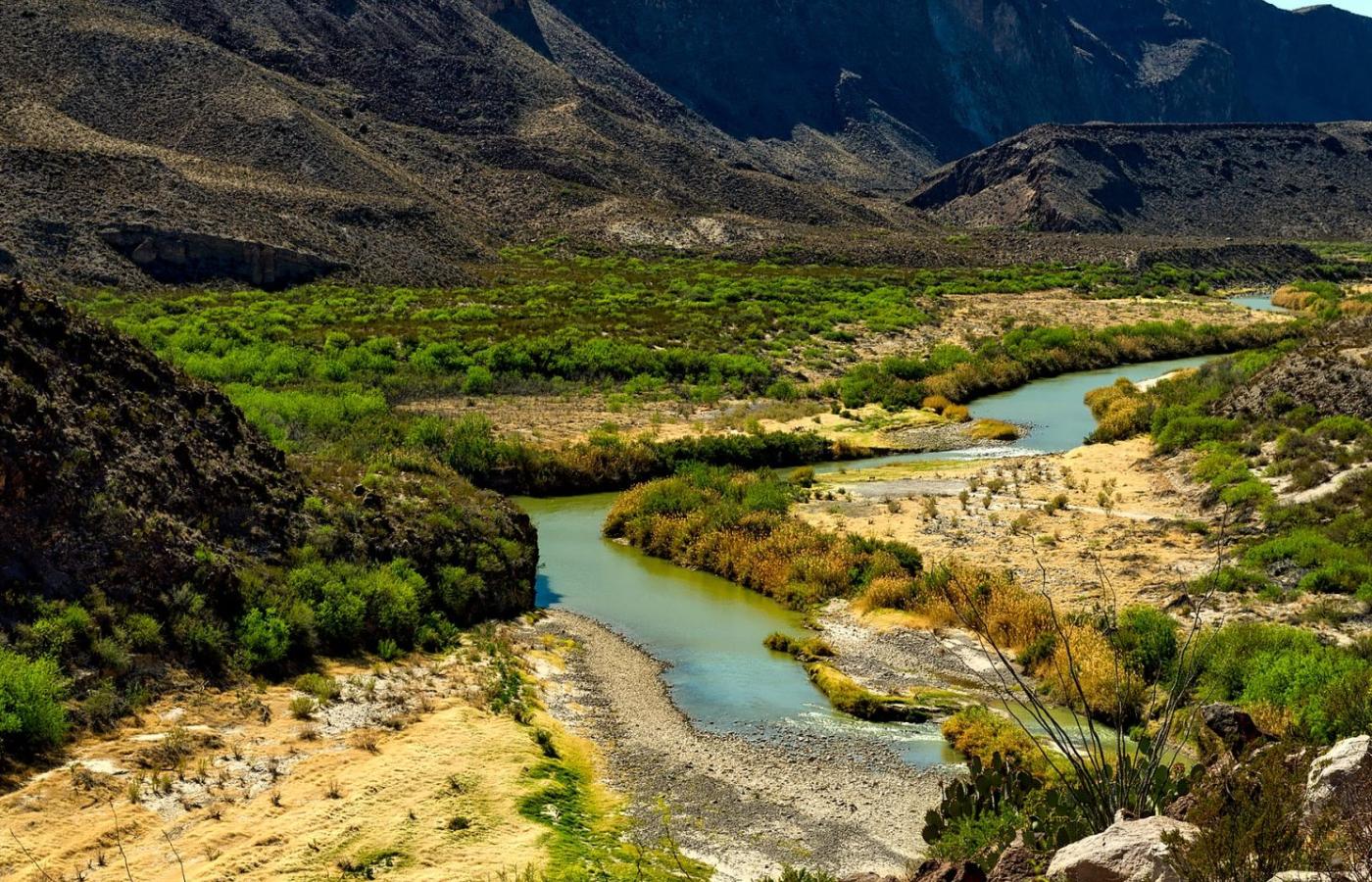 Rio Grande to jedna z największych rzek w Ameryce Północnej, która wypływa z Gór Skalistych i biegnie przez trzy tysiące kilometrów, zanim wpadnie do Zatoki Meksykańskiej. Przez ponad dwa tysiące kilometrów stanowi granicę między Teksasem a Meksykiem. Płynie przez pustynne i półpustynne tereny i zanim dotrze do położonego na granicy Teksasu i Meksyku miasta El Paso, czasem pozostaje z niej wątły strumień.