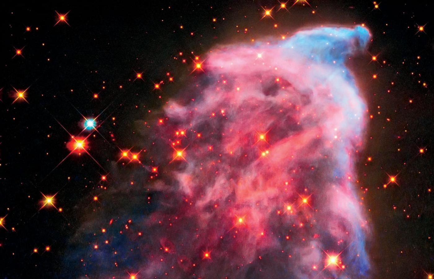 Ale Navi robi coś jeszcze. Otóż znajdująca się w odległości kilku lat świetlnych od niej mgławica oznaczona symbolem IC 63, zwana popularnie „duchem Kasjopei”, przybiera niezwykłe kształty i barwy – różową, czerwoną oraz niebieską.