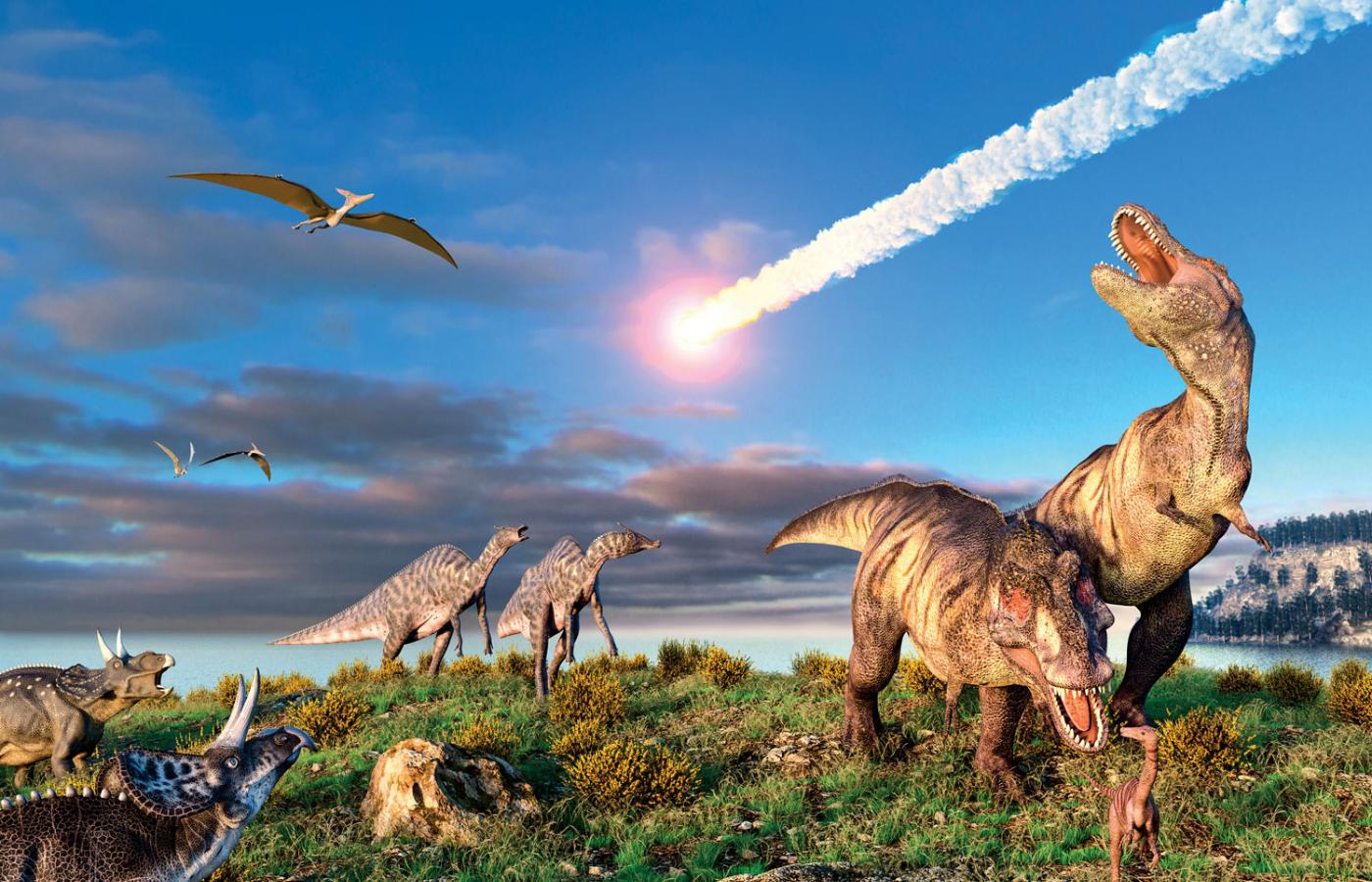 66 mln lat temu świat organizmów żywych najpierw został osłabiony przez gigantyczne wybuchy wulkanów, a następnie zniszczony w wyniku upadku ogromnej asteroidy.