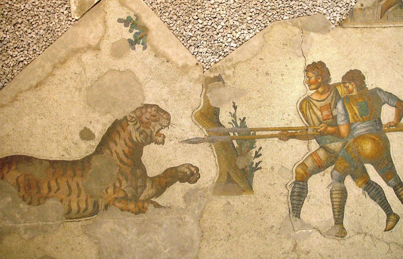 Dlaczego? Mamy tu jedną z niewielu scen, która potwierdza pełne patosu wzmianki o dzielnych gladiatorach (bonus gladiator). Ci mają w pogardzie krew, cierpienie i śmierć. W przeciwieństwie do ran z tyłu głowy i na plecach, te na torsie stanowiły dowód męstwa. Sądzę, że heroiczny charakter ran przegranego oraz fakt, że stoi, a nie leży, jak większość znanych z mozaik gladiatorów proszących o łaskę, dawały duże szanse, że gawiedź zażądała ułaskawienia. Zwykle ta decyzja należała do editora, czyli organizatora walk, ale w ramach fraternizacji z widzami brał on pod uwagę ich opinię.