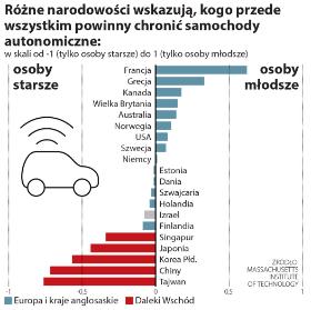 Do szyn przywiązano pięć osób. W ich kierunku pędzi wagonik. Ale możecie Państwo przestawić zwrotnicę i skierować go na drugi tor, gdzie leży tylko jedna osoba. Co zrobicie? Oto eksperyment myślowy zwany dylematem wagonika. W 2014 r. naukowcy z Massachusetts Institute of Technology umieścili w sieci jego zmodyfikowaną wersję: pytali o to, co w tego typu sytuacjach powinna zrobić sztuczna inteligencja. W „Nature” ukazała się analiza wyników. Są frapujące: uczestnicy z różnych krajów wydają się mieć różne preferencje. I tak kultury ceniące indywidualizm chętniej „ratowałyby” osoby młodsze niż starsze. To głównie państwa należące do tak zwanego Zachodu (Francja, Kanada, Wielka Brytania). Kultury szanujące działania kolektywne uważają odwrotnie. To głównie Daleki Wschód (Chiny, Korea Południowa, Japonia). Zachód większą też wagę niż Wschód przykłada do całkowitej liczby uratowanych osób. Te i inne wnioski z badań prawdopodobnie nie mają charakteru uniwersalnego. Nie uwzględniają też czynników demograficznych, a uczestnicy byli nieprzypadkowi itd. Ale z pewnością powinny być brane pod uwagę podczas ustalania norm etycznych dla chociażby samochodów autonomicznych. To one będą „decydować”, kogo i których – pasażerów, kierowców, przechodniów – ratować w sytuacji krytycznej.