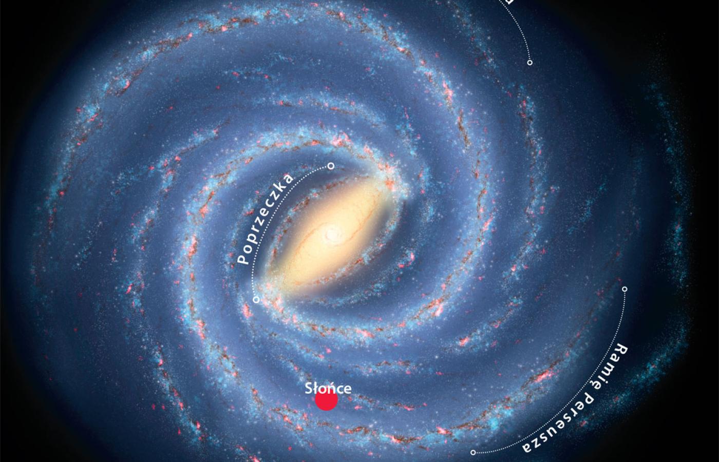 Z zewnątrz nasza Galaktyka wygląda jak cienki dysk o średnicy 100 tys. i grubości zaledwie 1 tys. lat świetlnych. My oglądamy ją od wewnątrz, więc patrząc wzdłuż promienia dysku, widzimy nieporównanie więcej gwiazd, niż gdybyśmy patrzyli wzdłuż jego osi.