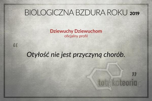 Na Biologiczną Bzdurę Roku 2019 można głosować do 12 stycznia 2020 r. na blogu „To tylko teoria”. Autor zwycięskiej wypowiedzi symbolicznie otrzyma statuetkę Alternatywnej Zięby.
