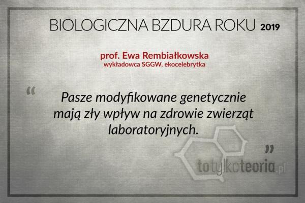 Ewę Rembiałkowskę, prof. SGGW, Sakowski określa mianem ekocelebrytki – ze względu na jej udział w kampaniach informacyjno-marketingowych dla sieci sklepów sprzedających ekożywność. Ewa Rembiałkowska w swoich wypowiedziach na temat rzekomej szkodliwości paszy GMO niejednokrotnie powoływała się na Gilles-Éric Séraliniego, którego badanie zostało zmanipulowane i wycofane z publikacji z czasopisma naukowego – sygnalizuje Sakowski. O antynaukowych dokonaniach zespołu prof. Seraliniego można przeczytać TU, TU i TU. A po rzetelną wiedzę nt. GMO warto zajrzeć do licznych artykułów Marcin Rotkiewicza.