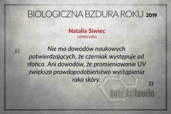 Natalia Siwiec to fotomodelka, aktorka, celebrytka. Popularność zyskała po zdobyciu tytułu „Miss Euro 2012”. Jej oficjalny profil na Instagramie śledzi ponad 1,1 mln osób. To właśnie tam Siwiec podzieliła się informacją, że nie ma naukowych dowodów na to, że promieniowanie UV zwiększa prawdopodobieństwo wystąpienia raka skóry ani na szkodliwe działanie opalania w ogóle.