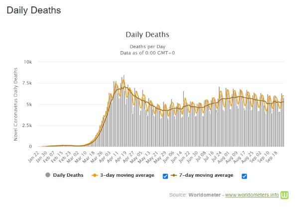 • W ostatnich tygodniach koronawirus zabijał na świecie 5–6 tys. ludzi tygodniowo.