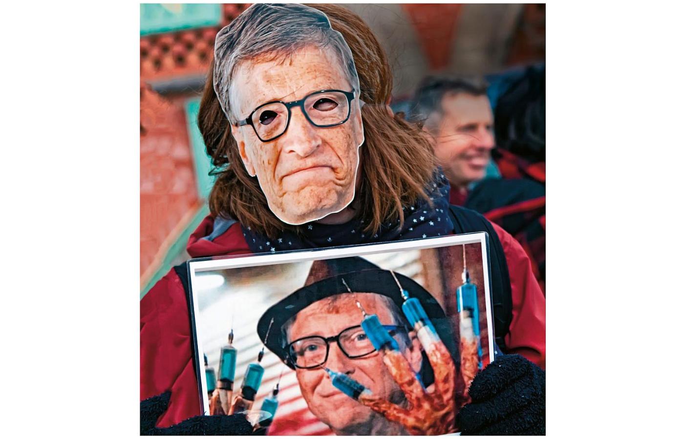 Arrest Bill Gates to także jeden z najpopularniejszych napisów widywanych na kartonach i transparentach. Czasem towarzyszy mu ilustracja – twórca Microsoftu ze strzykawką w dłoni, zwykle w charakterystycznym różowym sweterku symbolizującym wyalienowanie liberalnych elit. Jedna z książek tropiących rzekome niecne plany i postępki Gatesa ma nawet ten sweterek w tytule „The Devil in a Pink Sweater: Bill Gates and the Mark of the Beast” (Diabeł w różowym sweterku. Bill Gates i Znamię Bestii). Jej autorem jest Xaviant Haze, który w pokaźnym dorobku ma już m.in. dzieła o starożytnych olbrzymach, kosmitach w Egipcie oraz sekretnej historii amerykańskiej bankowości. To nie przypadek. Gates wyznacza dziś punkt, w którym krzyżują się ścieżki łączące niemal wszystkie teorie spiskowe.