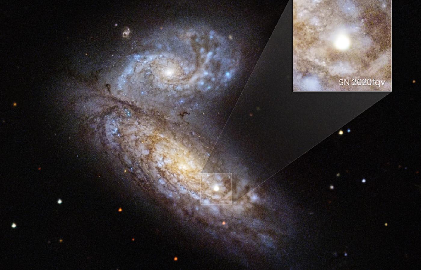 To niezwykłe zjawisko, oznaczone symbolem SN 2020 fqv, jako pierwszy zaobserwował zespół astronomów kierowany przez Ryana Foleya z Uniwersytetu Kalifornijskiego Santa Cruz, pracujący w Obserwatorium Palomar w Kalifornii. Badacze szybko się zorientowali, że także inne obserwatoria, np. kosmiczny teleskop TESS, musiały wybuch supernowej zarejestrować. Istotnie, TESS, przeznaczony głównie do poszukiwania planet pozasłonecznych, też eksplozję dostrzegł. Szybko więc wydano komunikat do kosmicznego teleskopu Hubble’a, by skierował zwierciadło w odpowiednie miejsce. I udało się. Oto mamy obraz supernowej dosłownie w chwili jej wybuchu. Wcześniej udawało się fotografować supernowe, jednak zawsze już po pewnym czasie po eksplozji – dni, tygodni lub miesięcy. Dzisiaj widzimy sam początek. To niezwykłe.