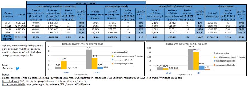 Na szczęście niedomagające państwo wyręczają obywatele. Na Twitterze można śledzić osoby dokładnie analizujące dostępne dane. Jedną z nich jest pani Alicja, której fachowe zestawienia są bardzo cenione – tak jak spokojne, cierpliwe i merytoryczne dyskusje z internautami. Dużą popularnością cieszyła się m.in. jej świetna i robiąca wrażenie analiza skuteczności (w okresie 13.12–28.12.2021) szczepionek, właśnie z podziałem na grupy wiekowe i przyjęte dawki.