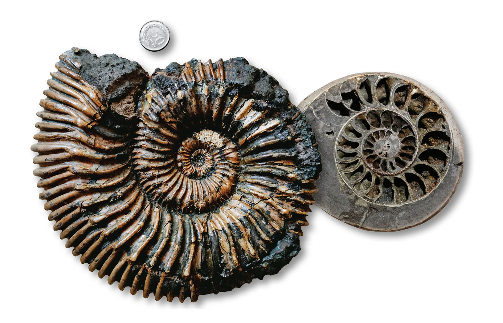 Wiadomo sporo, ale wciąż za mało. Amonity to jedna z najbardziej znanych i najliczniejszych grup kopalnych bezkręgowców. Należą do typu mięczaków, gromady głowonogów. Dzisiejsze głowonogi – kałamarnice, mątwy i ośmiornice – mają ciało miękkie pozbawione muszli albo z muszlą wewnętrzną. Tylko łodzik, który żyje w Pacyfiku i Oceanie Indyjskim, trochę przypomina amonity. Tak jak one ma skręconą spiralnie i podzieloną na komory muszlę zewnętrzną, czyli otaczającą ciało.