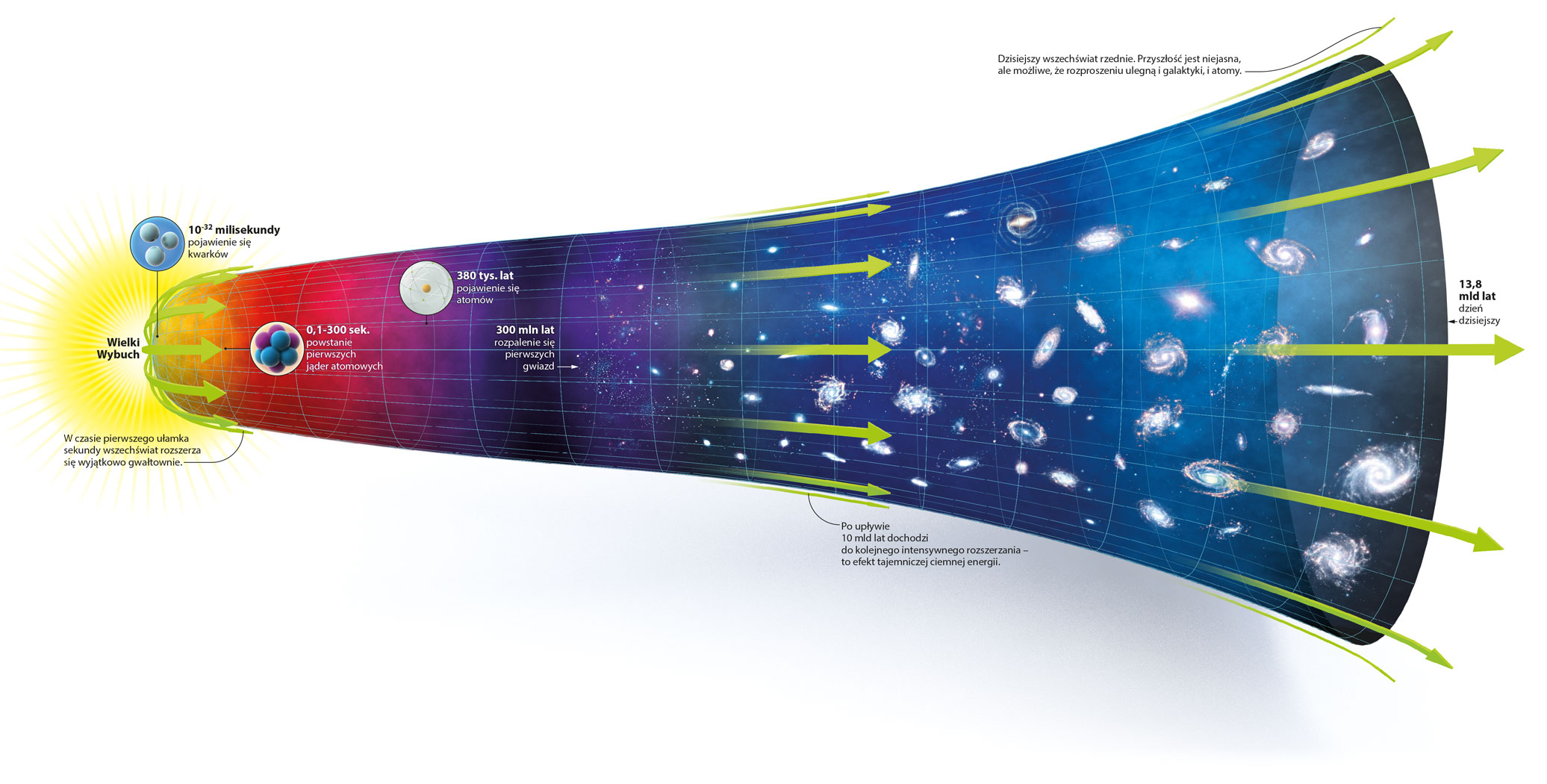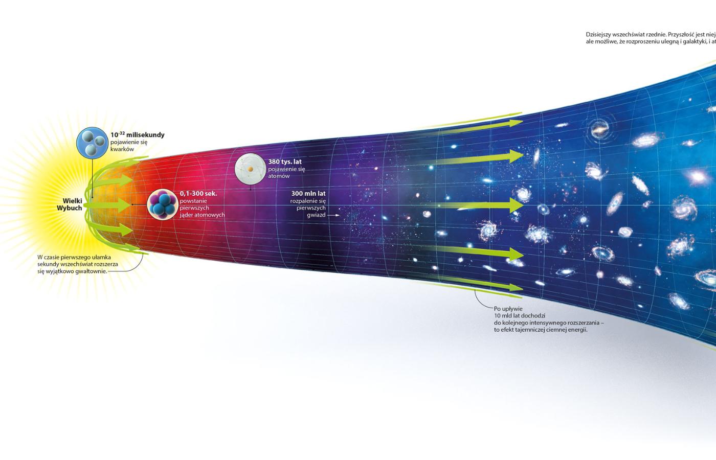 Trudno dziś znaleźć osobę, która nie słyszałaby o Wielkim Wybuchu. W błędzie są jednak ci, którzy uważają, że teoria ta dotyczy początku, czy wręcz stworzenia wszechświata. Jest ona tylko naukowym modelem, który pozwala prześledzić ewolucję kosmosu od pewnej chwili w dalekiej przeszłości po jeszcze bardziej odległą przyszłość. Dzięki niemu możemy połączyć w spójną narrację wątki i fakty pozornie tak od siebie odległe, jak rozbieganie się galaktyk i liczba atomów wodoru przypadających w kosmosie na jeden atom helu.