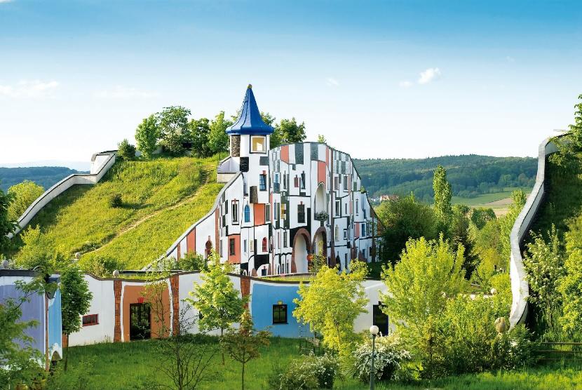 Każdego dnia do tuzina basenów – pod dachem i na zewnątrz oraz do specjalnych zewnętrznych mis, sprawiających wrażenie, że lewitują nad taflą – trafiają dziesiątki tysięcy litrów podgrzanej pod ziemią wody o różnych właściwościach. Podobnymi widokami może pochwalić się Alpentherme Gastein spod Salzburga, szczycące się tym, że oferuje całkowicie naturalną wodą termalną. Rogner Bad Blumau – jeden z dziewięciu ośrodków termalnych w kraju związkowego Styria – został zaprojektowany przez głośnego artystę wizualnego, Friedensreicha Hundertwassera, który w wyjątkowy sposób połączył naturę z nieco bajkową architekturą i trawiastymi dachami udostępnionymi do chodzenia.