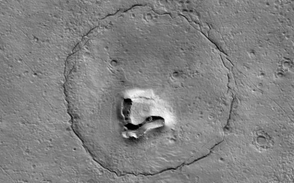 Z kolei w grudniu 2022 r. sonda Mars Reconnaissance Orbiter uwieczniła formację geologiczną, która kojarzyć może się z pyskiem niedźwiedzia.