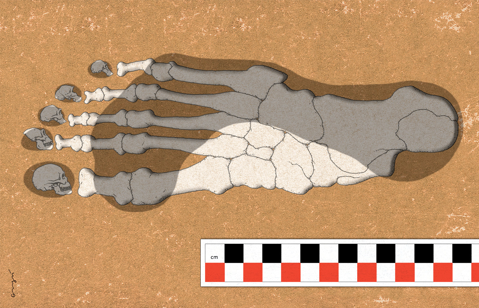 „A więc zaczynaliśmy od nóg, nie od głowy” – taką sentencją podzielił się kiedyś znany francuski antropolog André Leroi-Gourhan i z pewnością w tym swoim zadziwieniu, ale i rozbawieniu, nie był odosobniony. Bo jak to: nie głowa, lecz nogi miały czynić nas ludźmi i odróżniać od innych zwierząt, a małp w szczególności? Opinia Leroi-Gourhana była reakcją na odkrycie Lucy, najbardziej kompletnego i najstarszego w owym czasie osobnika Australopithecus aferensis, okrzyczanego „pramatką całej ludzkości”. Lucy żyła około 3,2 mln lat temu, a odkryta została w 1974 r., więc do związanych z nią debat i kontrowersji nie warto byłoby wracać, gdyby nie fakt, że w ostatnich czasach zyskują całkiem nową aktualność i że dotyczą najgłębszej istoty człowieczeństwa.