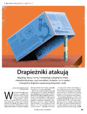 Po lekturze artykułu opublikowanego w POLITYCE 41 pozostaje wrażenie, że czasopisma „drapieżne” opanują naukę na jej zgubę. Ja tę sprawę widzę zupełnie inaczej. Pojawienie się licznych czasopism, które chcą zarabiać na publikacjach, nie jest dla nauki zagrożeniem. Jest za to nowością, która zapewne bardzo zmieni rynek, ale go nie zniszczy – pozytywnie przyczyni się do rozwoju nauki. Nikt nikomu przecież nie zakazuje publikowania również w czasopismach tradycyjnych.