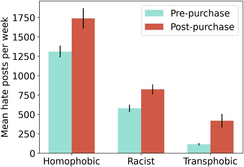 Okazało się, że po przejęciu platformy przez Muska liczba postów zawierających mowę nienawiści wzrosła o ok. 50 proc. Co więcej, średnia liczba polubień takich postów skoczyła aż o 70 proc. Badacze przeanalizowali również różne formy mowy nienawiści. Największy wzrost – aż o 260 proc. – odnotowano w przypadku transfobicznych wpisów. Natomiast liczba postów homofobicznych zwiększyła się o 30 proc., a rasistowskich o 42 proc. Dla porównania: ogólna aktywność na platformie wzrosła w tym czasie jedynie o 8 proc.