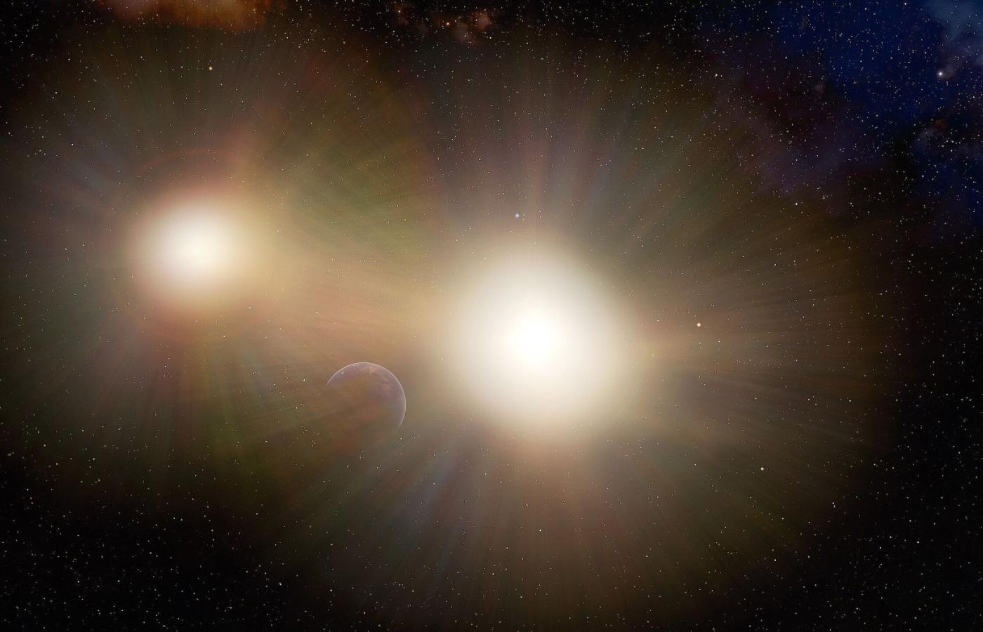 Planetę, która posiada dwa równorzędne Słońca, odkryli niedawno astronomowie z Northwestern University w USA i to przez przypadek, a dokładnie – w starych archiwalnych danych. By być w zgodzie z prawdą, trzeba powiedzieć, że układów wielokrotnych gwiazd (przeważnie podwójnych) z planetą odkryto już kilka wcześniej, m.in. przy pomocy kosmicznego teleskopu Keplera. Jednak w przypadku z Northwestern University mamy dwie równorzędne gwiazdy nieco masywniejsze od naszego Słońca, które obiegają się wokół wspólnego środka masy co 18 godz. – są więc niezwykle blisko siebie – i planetę typu superjowisz o symbolu HD 143811 AB bk8, która okrąża obie gwiazdy bardzo blisko, najbliżej w porównaniu z innymi układami tego typu odkrytymi wcześniej, choć okres tego obiegu i tak wynosi prawie 300 lat. Jednak obserwator z tej planety widziałby na niebie dwa bardzo podobne do siebie i potężne Słońca; jedno obok drugiego. Jak na Tatooine.