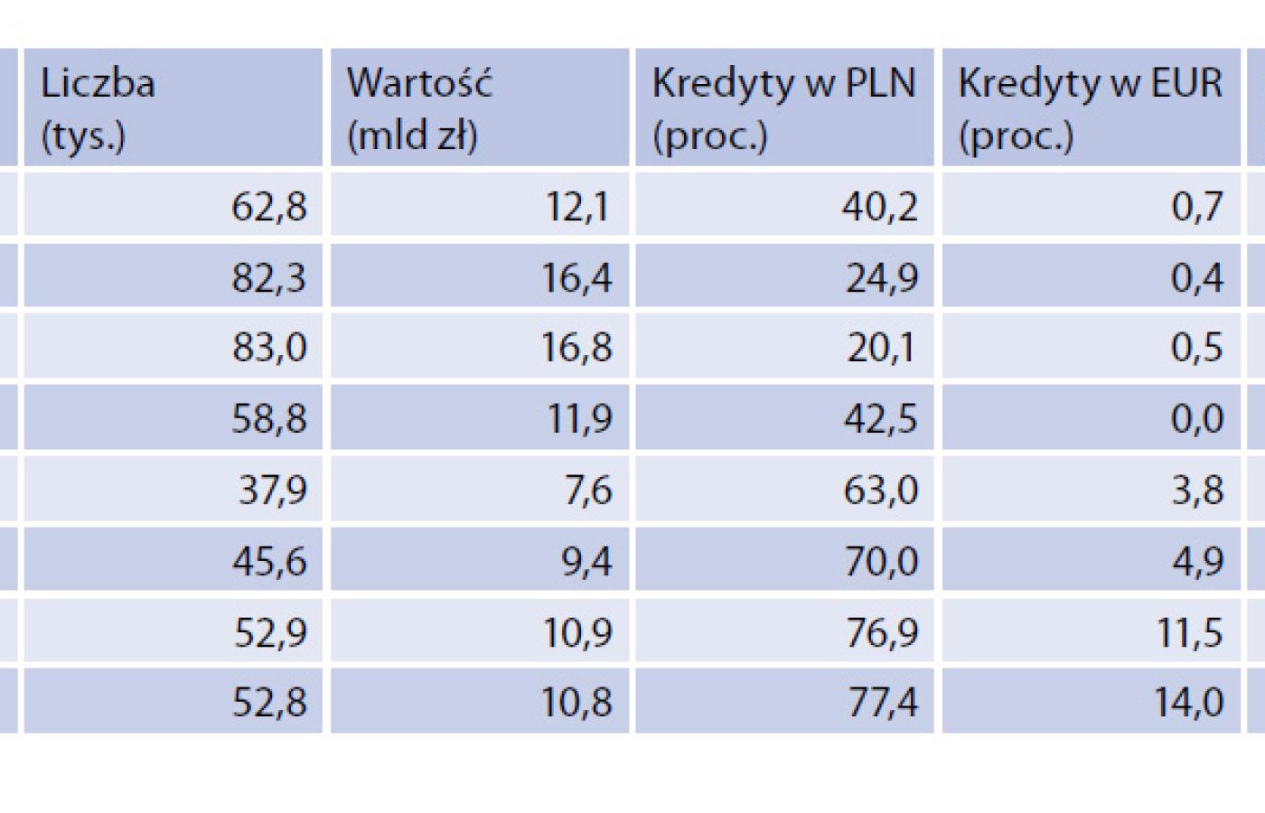 Nie znaczy to jednak, że oferta jest dziś taka sama jak przed początkiem światowego kryzysu. Teraz banki dokładniej sprawdzają nasze możliwości finansowe, a od osób gorzej zarabiających wymagają większego niż kiedyś wkładu własnego. Kryzysowa zawierucha okazała się też sporym zagrożeniem dla dostępności i stabilności kursu franka szwajcarskiego – waluty, w której w 2008 r. udzielano aż dwóch trzecich wszystkich kredytów hipotecznych w Polsce.