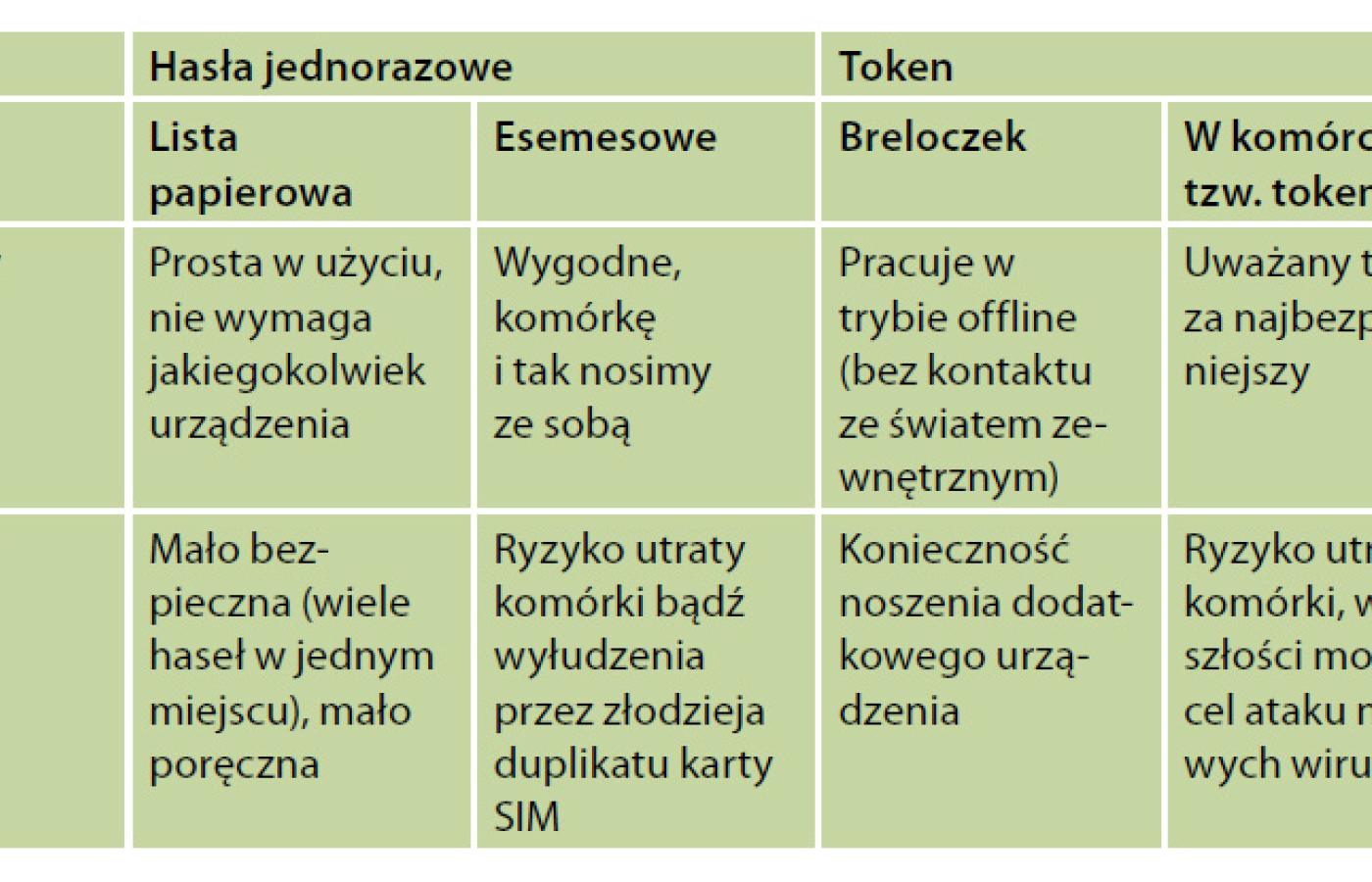 Banki, które nie oferują swoim klientom tokenów, proponują jednorazowe hasła, przesyłane w razie potrzeby na telefon komórkowy. Kilka lat temu królowały papierowe listy kodów, które po kolei wprowadzaliśmy do systemu transakcyjnego, gdy nas o to prosił. Teraz od takich papierowych haseł już się odchodzi – właśnie na korzyść esemesowych.