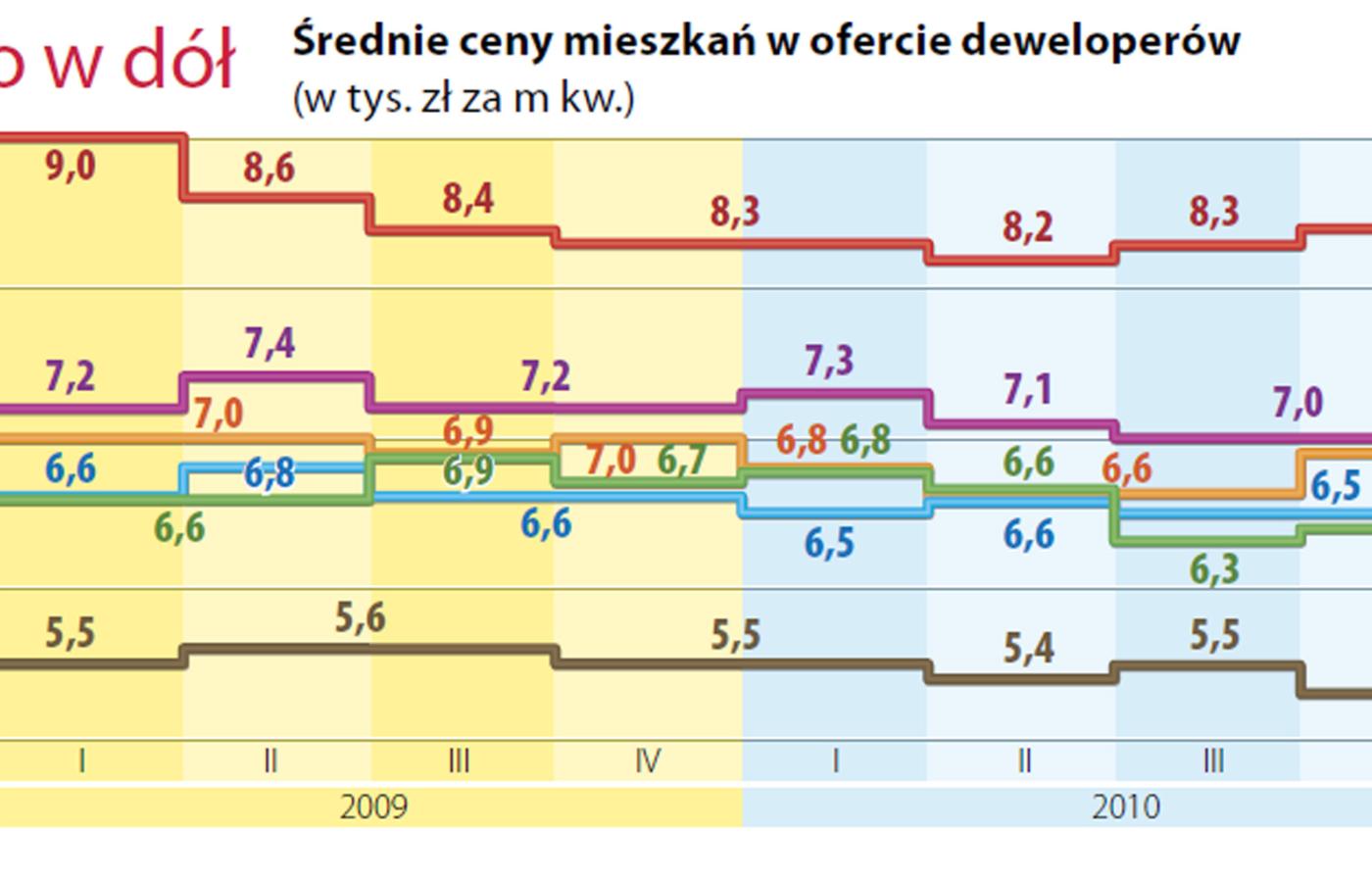 W ofertach deweloperów w sześciu największych miastach jest ponad 39 tys. mieszkań (według firmy doradczej REAS). Tylu nowych lokali do kupienia jeszcze na rynku nie było. Szkopuł w tym, że wiele z nich to na razie dziury w ziemi. – W całym 2008 r. i w czasie trzech kwartałów 2009 r. nie wprowadziliśmy do oferty sprzedaży ani jednej inwestycji. Sytuacja zmieniła się dopiero w roku ubiegłym: zaczęliśmy wtedy sprzedaż mieszkań w 12 nowych projektach – mówi Jarosław Szanajca, prezes Dom Development SA, największej firmy deweloperskiej w Warszawie.