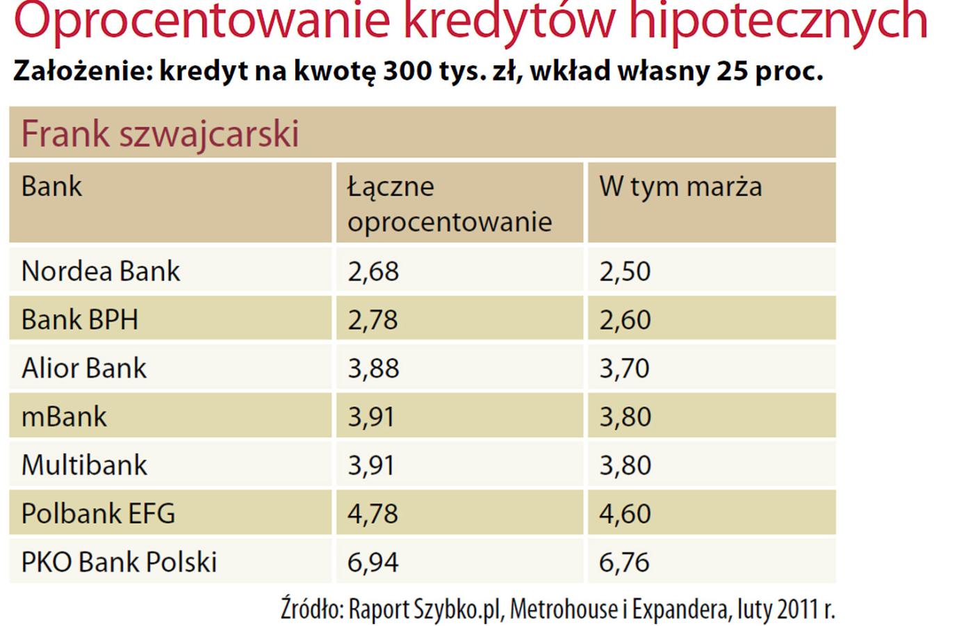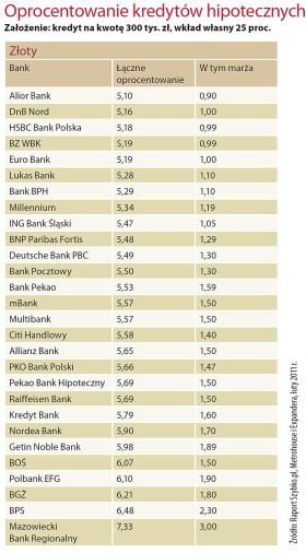 Dlaczego banki tak chętnie obniżają marże do przedziału między 1 a 1,5 proc., zwłaszcza w przypadku kredytów złotowych? Eksperci wskazują, że to nie tyle działalność filantropijna, ile po prostu rezygnacja z wygórowanych warunków, jakie te same banki stawiały zaraz po wybuchu światowego kryzysu finansowego. Szukając najniżej oprocentowanych kredytów, warto jednak zwracać uwagę nie tylko na wysokość marż, ale też na dodatkowe opłaty. Często najkorzystniejsze warunki dotyczą tylko pierwszych kilku lat spłacania pożyczki. Poza tym banki lubią odbić sobie straty na wyjątkowo niskiej marży wyższą jednorazową prowizją za udzielenie kredytu.