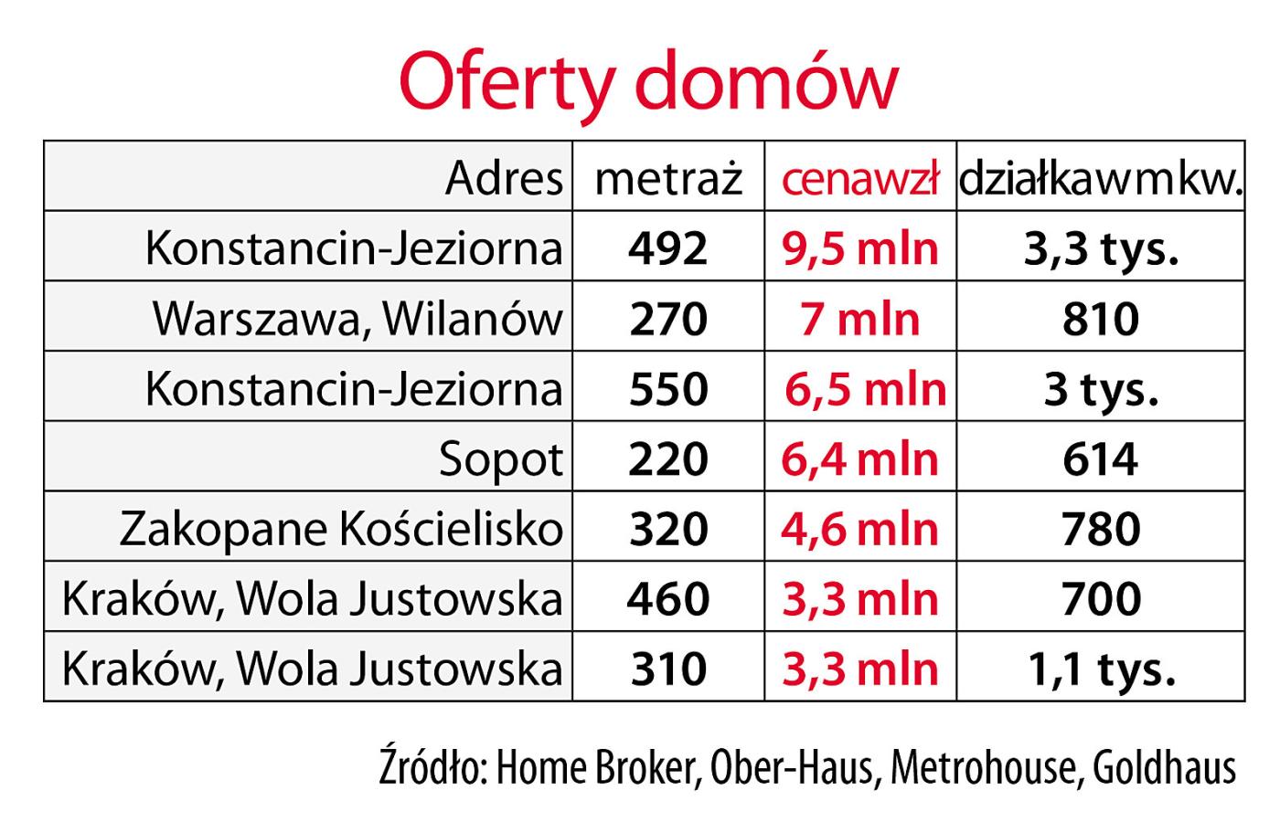 Najdroższym domem w Polsce, który ponad dwa lata temu trafił na rynek (i na nim pozostał), jest willa w Piasecznie, wyceniona przez właściciela na 110 mln zł (ostatnia cena – 90 mln). Z internetowej prezentacji wynika, że na jej budowę i wyposażenie wydano wielkie pieniądze. Wnętrza przypominają pałace fabrykantów z filmu „Ziemia obiecana”. Tylko kto dzisiaj chce tak mieszkać? Pośrednicy w handlu nieruchomościami radzą, żeby budować takie domy, które po latach można będzie korzystnie sprzedać. Willa w Piasecznie pewnie długo jeszcze na ten dzień poczeka.