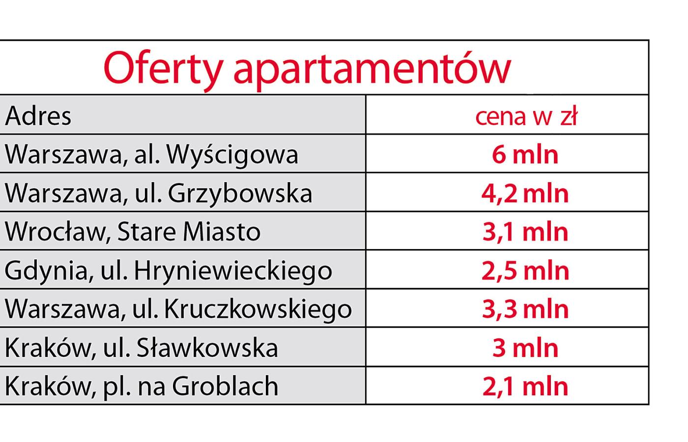 Mieszkania w wieżowcach, ze wspaniałą panoramą, pociągają zamożnych młodych ludzi. Starsi cenią sobie apartamenty w zabytkowych kamienicach, które mają specyficzny klimat, dają poczucie trwałości. Oczywiście najwyżej notowane są kamienice wyremontowane i zmodernizowane, wyposażone w nowoczesne instalacje, windy i w podziemne garaże. Najwięcej takich inwestycji prowadzonych jest w Krakowie. Najnowsza oferta to Apartamenty Bogoria, mieszkania w renesansowej kamienicy przy ulicy Senackiej 6, w centrum miasta. Za 227-metrowy apartament trzeba zapłacić 7,2 mln zł (32 tys. zł za metr). W cenie – widok na Wawel.