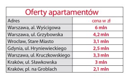 Mieszkania w wieżowcach, ze wspaniałą panoramą, pociągają zamożnych młodych ludzi. Starsi cenią sobie apartamenty w zabytkowych kamienicach, które mają specyficzny klimat, dają poczucie trwałości. Oczywiście najwyżej notowane są kamienice wyremontowane i zmodernizowane, wyposażone w nowoczesne instalacje, windy i w podziemne garaże. Najwięcej takich inwestycji prowadzonych jest w Krakowie. Najnowsza oferta to Apartamenty Bogoria, mieszkania w renesansowej kamienicy przy ulicy Senackiej 6, w centrum miasta. Za 227-metrowy apartament trzeba zapłacić 7,2 mln zł (32 tys. zł za metr). W cenie – widok na Wawel.