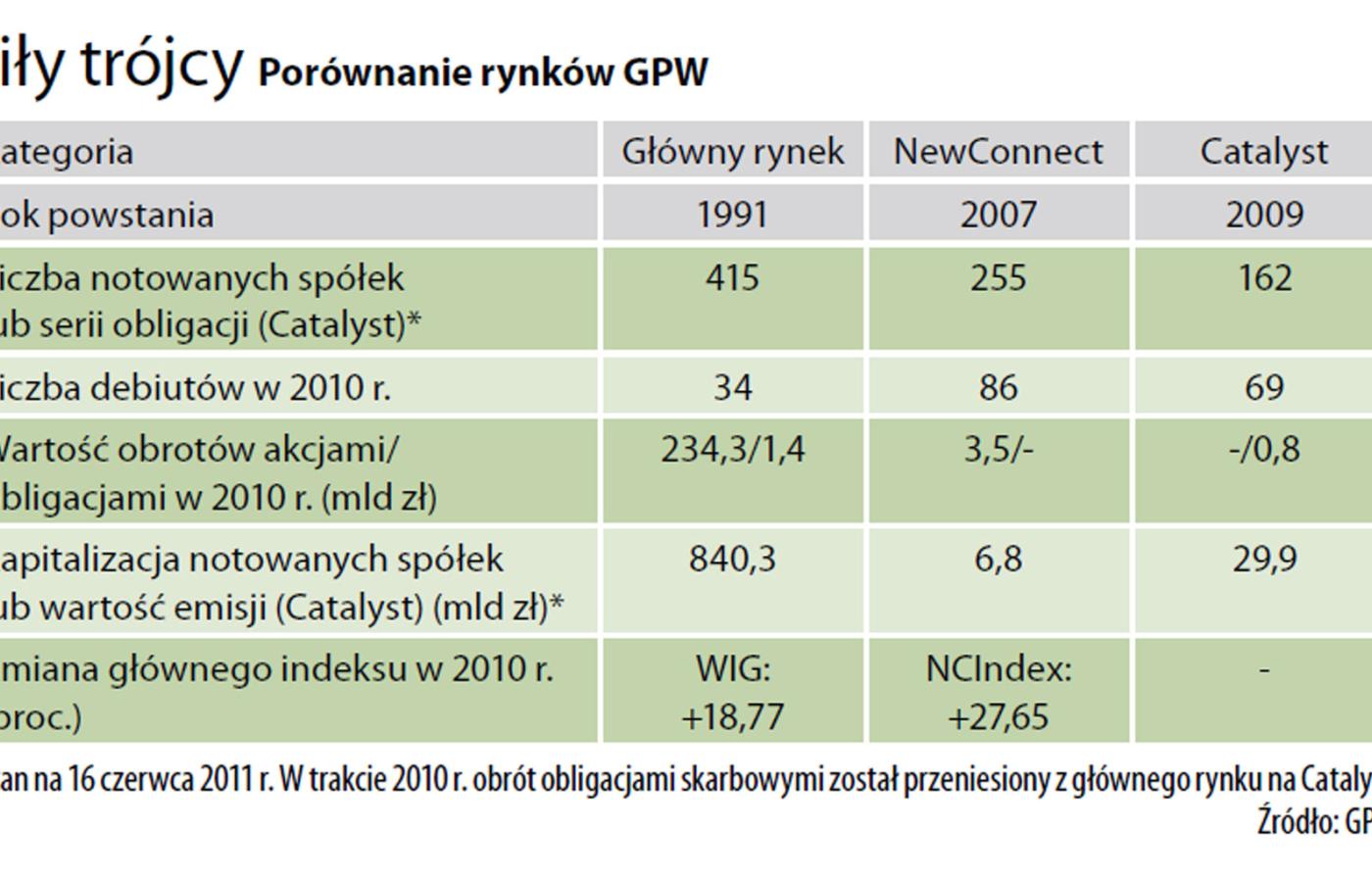 Zdecydowana większość inwestorów na warszawskiej giełdzie dokonuje transakcji na jej głównym rynku, istniejącym już od ponad 20 lat. Jednak od czterech lat mają również do dyspozycji rynek akcji funkcjonujący pod nazwą NewConnect, a od prawie dwóch lat także rynek obrotu obligacjami – Catalyst. Nie są to nowe giełdy, a tylko dodatkowe możliwości handlu w ramach systemu Giełdy Papierów Wartościowych. Wielu, szczególnie drobnych akcjonariuszy, omija NewConnect i Catalyst z prostej przyczyny – braku wystarczającej wiedzy o nich. Tymczasem nie należą one do szczególnie skomplikowanych, choć każdy z tych rynków ma pewne specyficzne cechy. Podstawowa różnica między nimi to rodzaj papierów wartościowych, jakimi można handlować.
