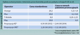 Większość polskich sieci każe sobie płacić za każdy megabajt, który ściągniemy lub wyślemy podczas pobytu w krajach Unii Europejskiej, aż 20 zł. Jedynie T-Mobile – w ramach jednej z promocji rozpoczętych podczas zmiany nazwy sieci z Ery – obniżył stawkę do 8 zł, ale to i tak bardzo dużo. Szczególnie że dziś megabajt to bardzo mała ilość danych. Zwłaszcza gdy wysyłamy czy ściągamy zdjęcia, nie mówiąc nawet o filmach.