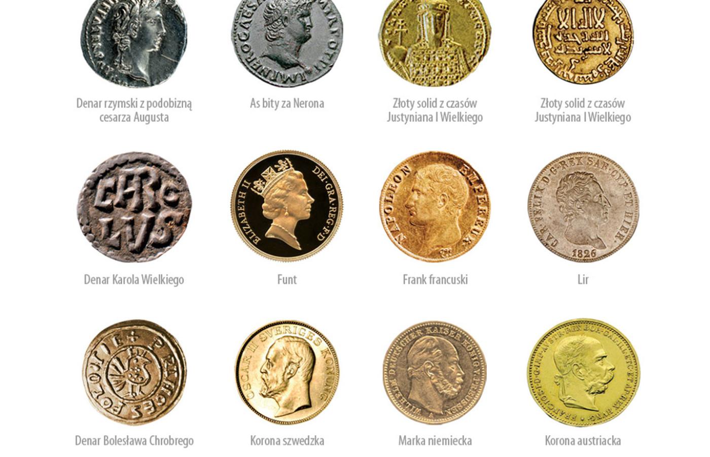 Dawne monety przetrwały w języku często dłużej niż w portfelu. Rzymski denar dał nazwę nie tylko monetom paru krajów arabskich, lecz także serbskiemu dinarowi i hiszpańskiemu słowu dinero, oznaczającemu pieniądz. Dioklecjański solid, używany do wypłacania żołdu, stał się źródłosłowem angielskiego soldier, niemieckiego Soldat, portugalskiego soldado (wszystkie trzy oznaczają żołnierza), a dodatkowo hiszpańskiego sueldo (pensja) i włoskiego soldi (pieniądze). Średniowieczny grosz przetrwał w Niemczech do czasu wprowadzenia euro jako potoczna nazwa monety 10-fenigowej, a na Ukrainie – jako ogólne określenie pieniądza (hroszi). Francuzi jako jedni z nielicznych zachowali lingwistyczną świadomość, że rzeczywistą miarą wartości nie są monety, lecz zawarty w nich metal – słowa srebro i pieniądze są w ich języku homonimami (l’argent).